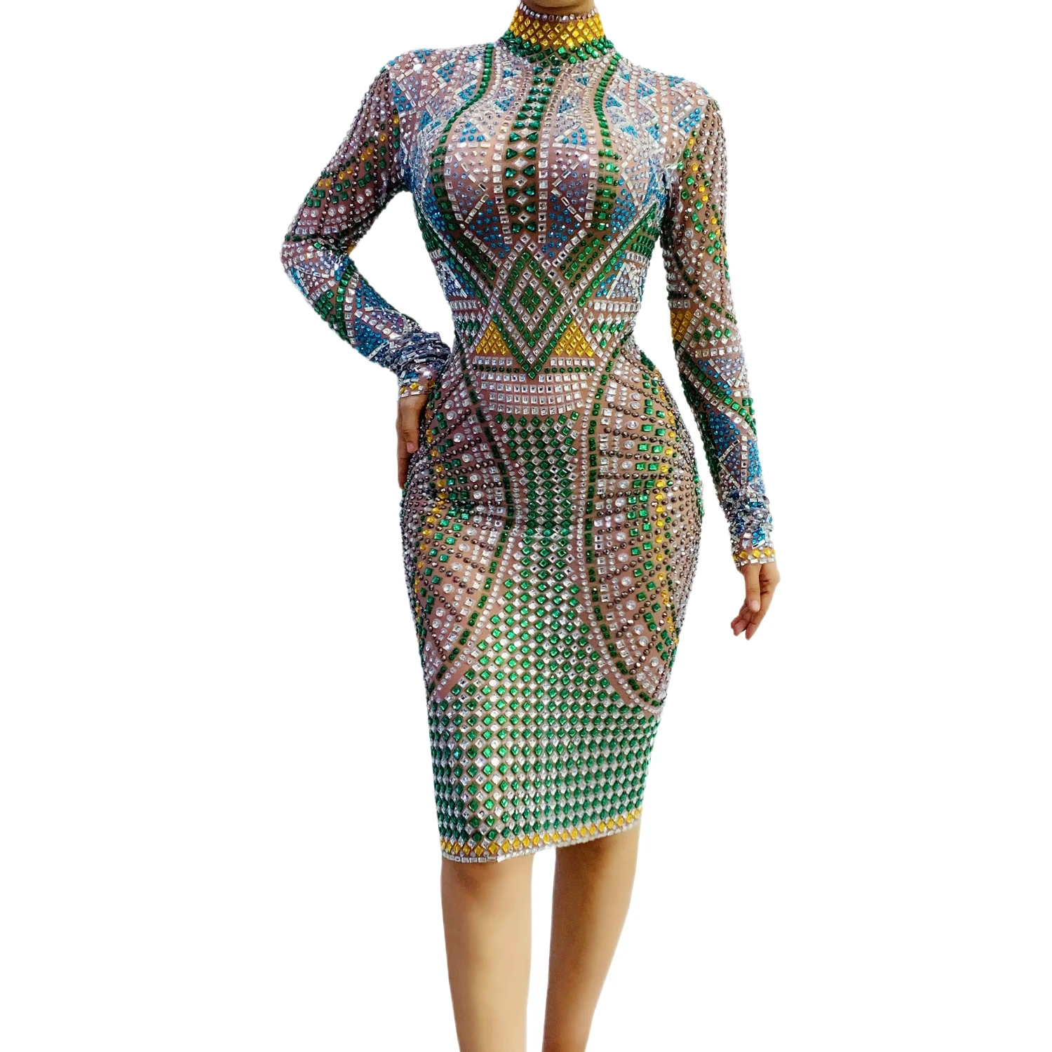 Glistening Beaded Long Sleeve Bodycon Dress for Stunning New Year Party Looks