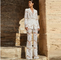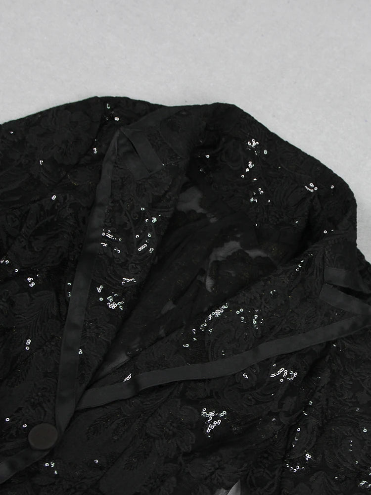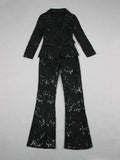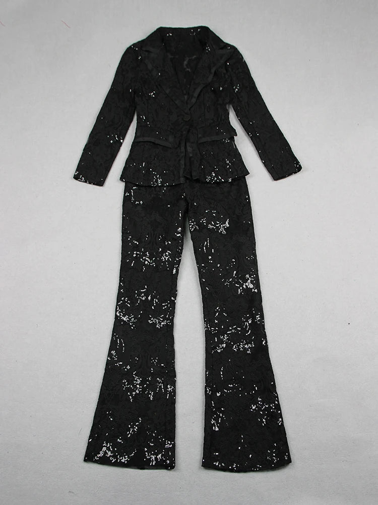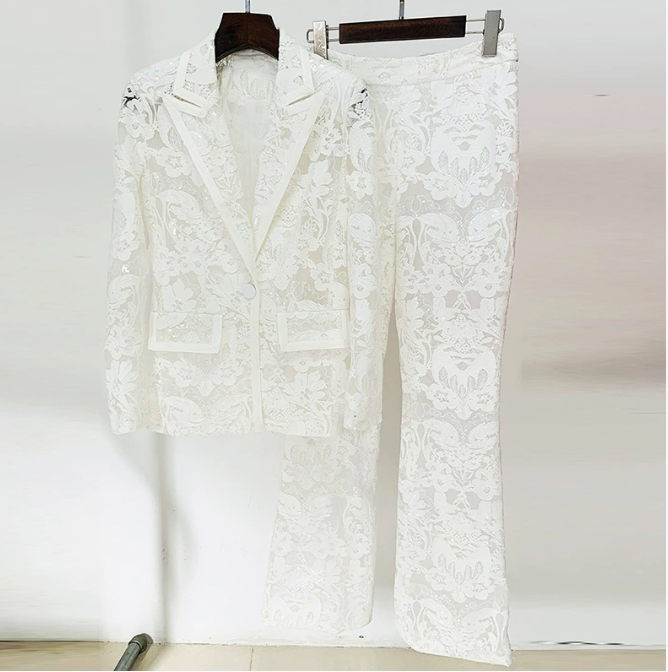 Black Lace Mesh Embroidered Sequin Pant Sets White New Designer Sequins Blazer Pants Set 2 Pieces Pants Suits Punk Suit Outfis