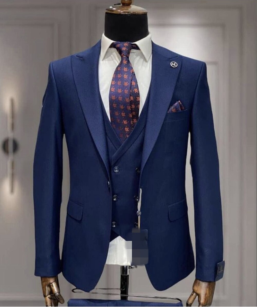Black Wedding Men Suits Groom Tuxedos Business Blazer Trousers Prom Party Wear Coat 3Pcs(Jacket+Pants+Vest)Costume Homme Mariage
