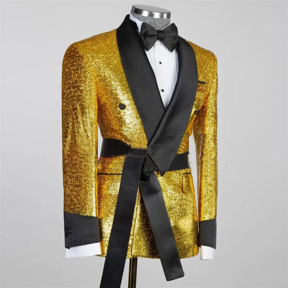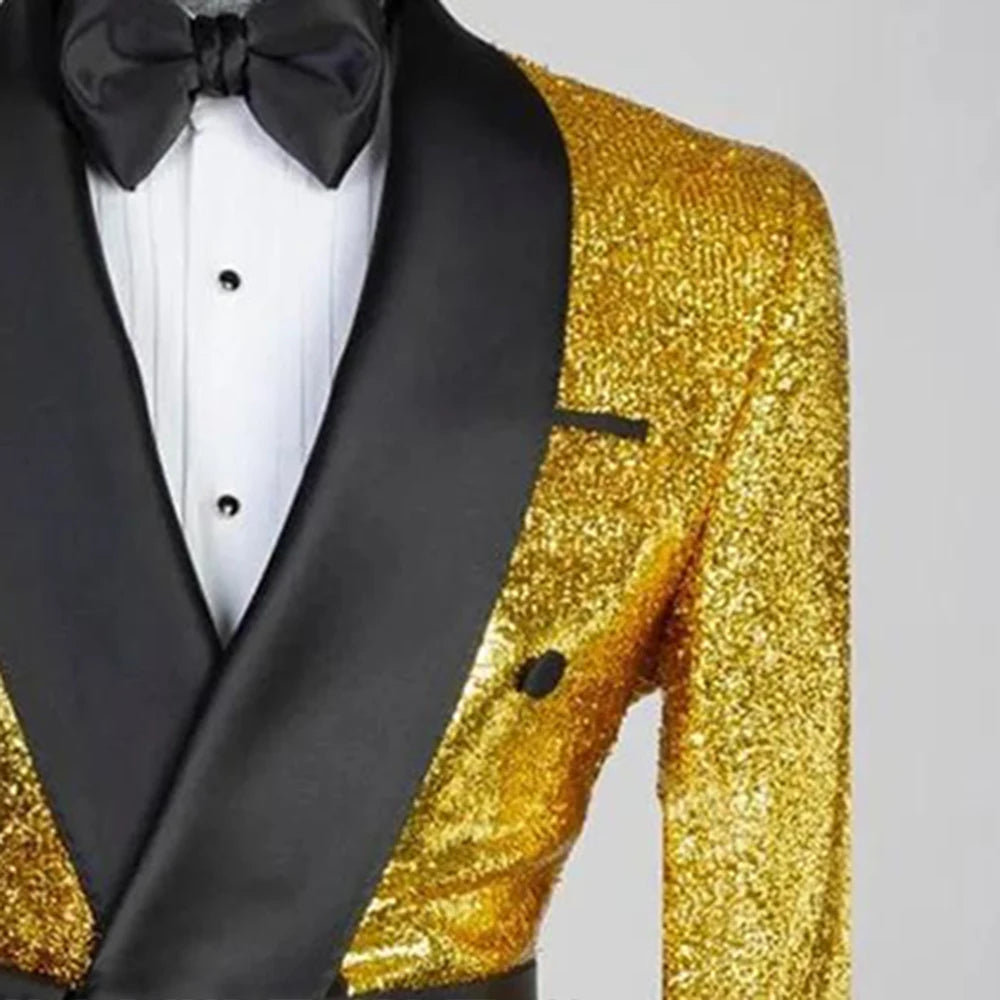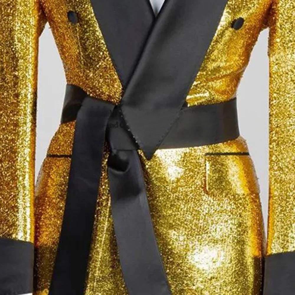 Glistening Gold 3-Piece Suit for Men - Standout Tuxedo Jacket, Pants, and Vest for Parties and Weddings