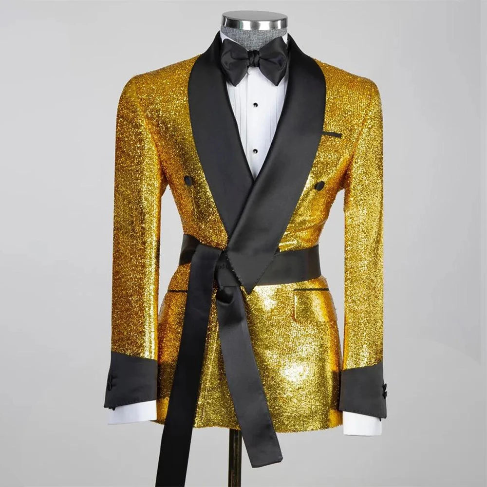 Elevate your formalwear with our Blazer Suit for Men, a luxurious 3-piece outfit set that combines sophistication and versatility. This stylish ensemble includes a tailored blazer, matching pants, and a coordinating vest, perfect for parties, weddings, and tuxedo events. Crafted with high-quality materials, the blazer and vest feature elegant designs, while the comfortable pants ensure a perfect fit. With its striking golden accents, this costume designer suit makes a bold statement, ideal for the modern gentleman who wants to stand out. Make a memorable impression at any occasion with this exquisite outfit set.
