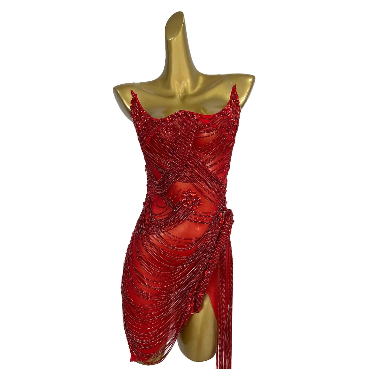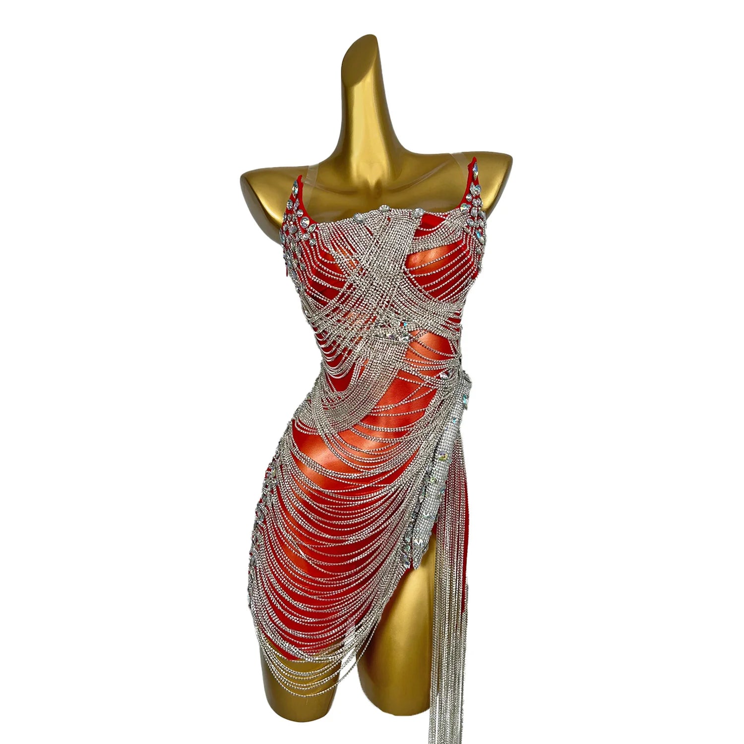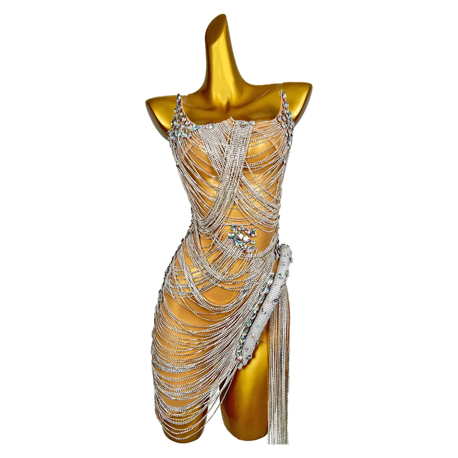 Bling Bling Diamond Fringe Dress Sexy Spaghetti Straps Birthday Party Dress Robe De Soiree Summer Night Out Club Costume