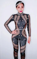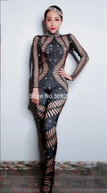 Shine brighter than ever in this bling crystal rhinestone jumpsuit, crafted from stretchy spandex for a flawless, figure-hugging fit. Designed for women who love to stand out, this sexy dance costume is perfect for evening parties, nightclub events, or show-stopping singer performances. Adorned with sparkling rhinestones, this bodysuit brings bold elegance and irresistible glamour to any occasion, ensuring you catch every spotlight on your way.