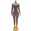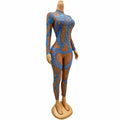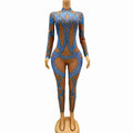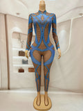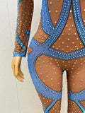 Blue Gold Rhinestone Stretch Niche Design Sensual Sexy Jumpsuits Dance Outfits Leggings Diamond Jumpsuit Outfits