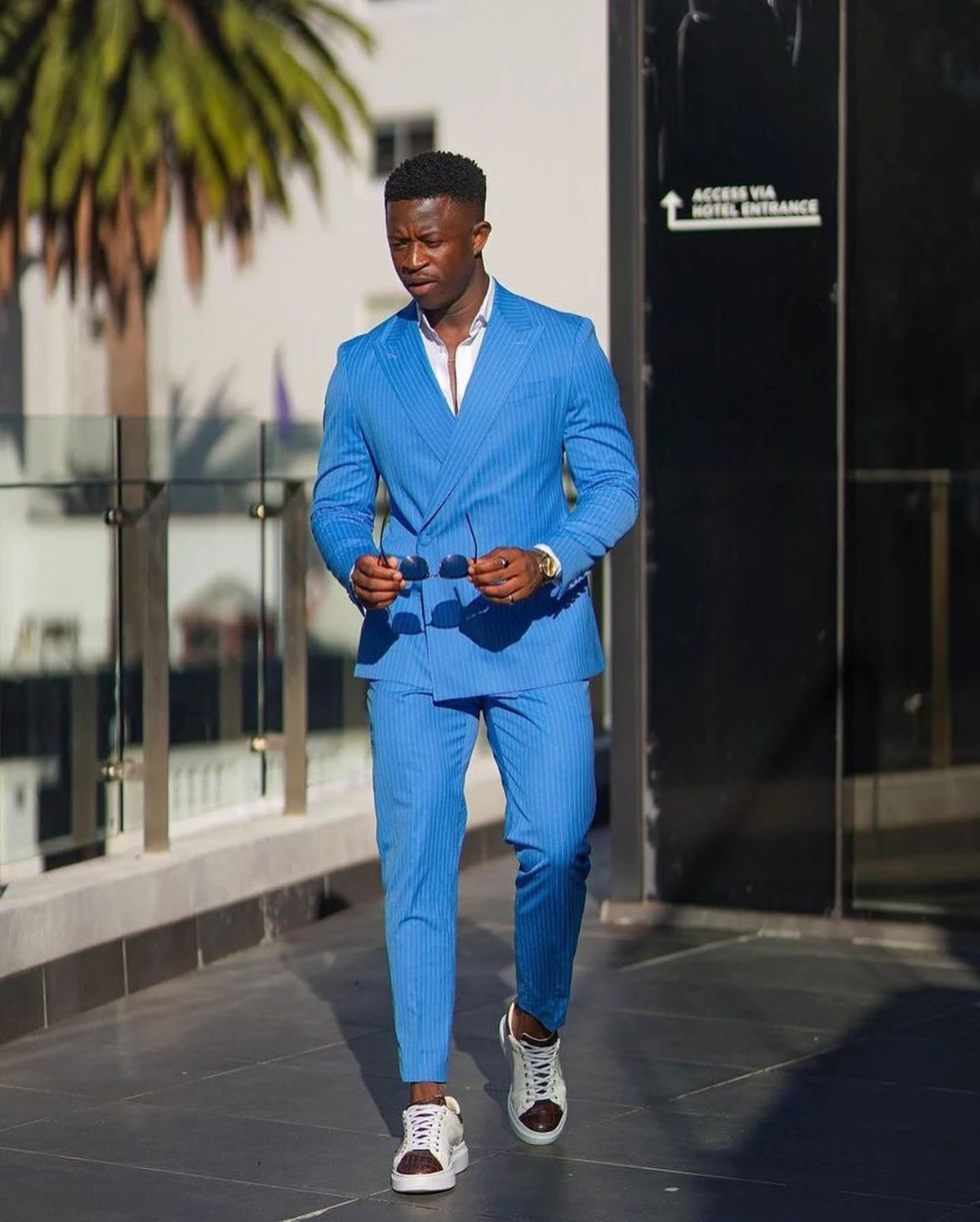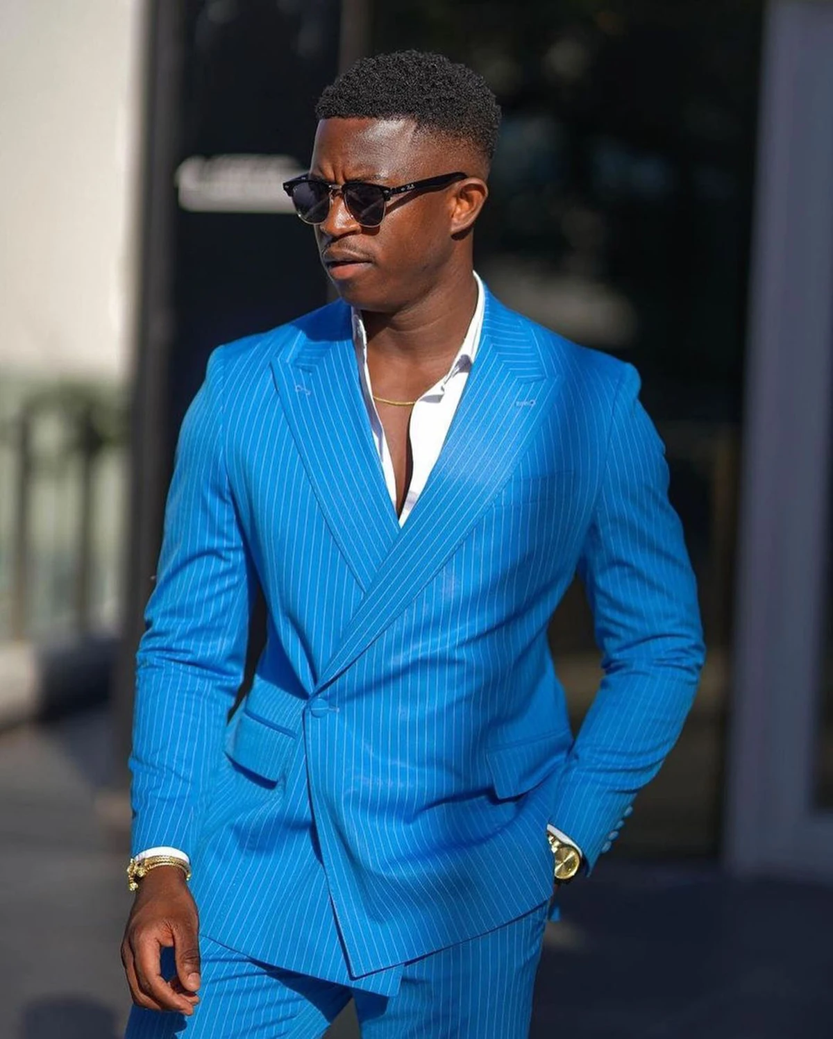 Blue Men's Suits Tailor-Made 2 Pieces Blazer Pants One Button Pinstripes Tuxedo Wide Lapel Business Wedding Plus Size Tailored