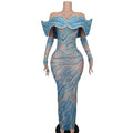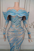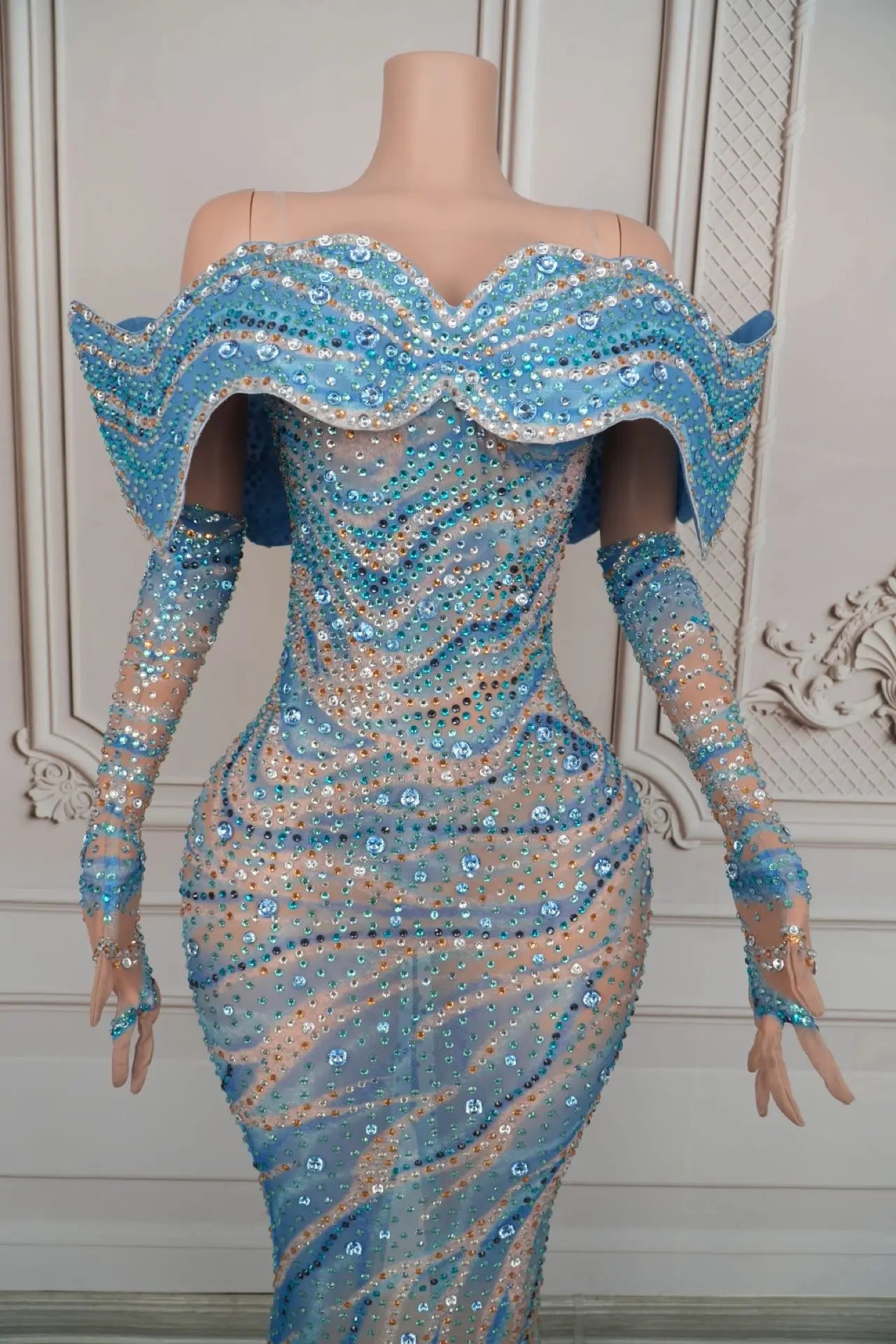 Blue Mermaid Long Prom Dresses for Black Girls Unique Design Corset Strapless Crystal Evening Gowns for Party with Gloves Aorun