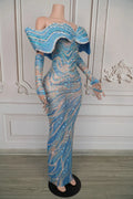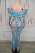 Elevate prom night with this Blue Mermaid Long Prom Dress — a strapless, corset‑style mermaid gown designed to flatter darker skin tones with rich blue hues, sculpting boning, and luminous crystal embellishments. Thoughtfully designed for comfort, support, and camera‑ready glamour; includes matching gloves to complete the look.