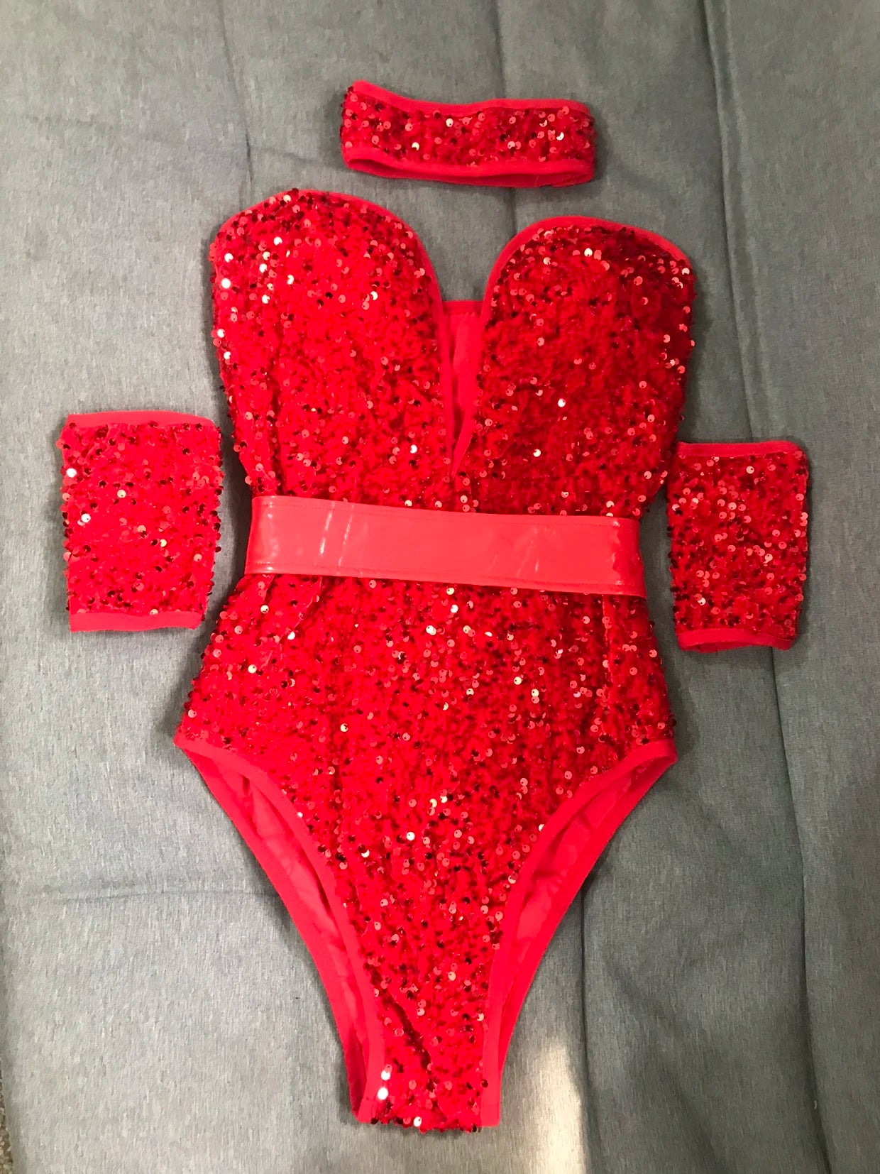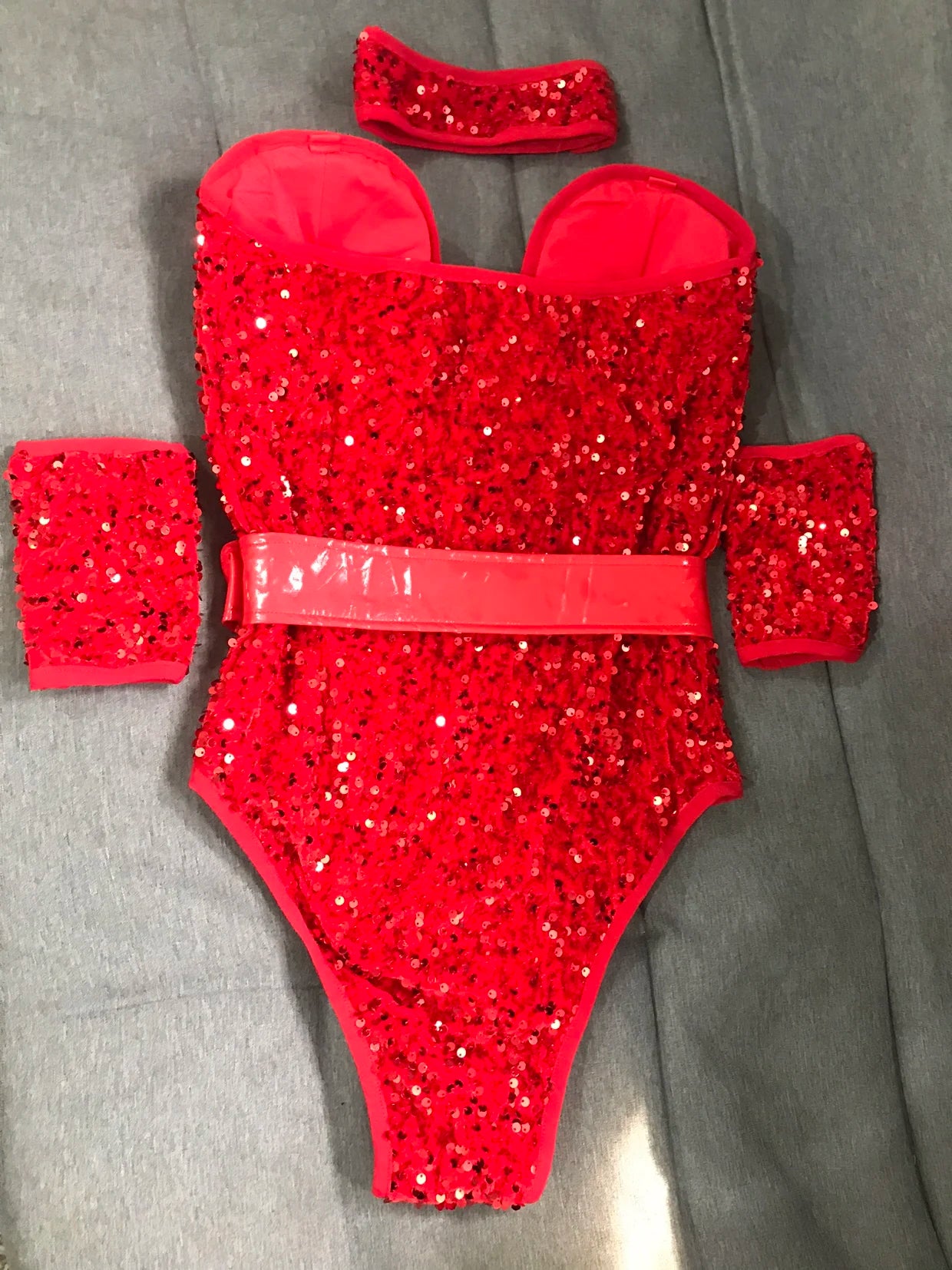 Blue Pink Velvet Sequins Bodysuit Bar Nightclub Sexy Stage Wear Women Dancer Singer Jazz Dance Costume Club Party Rave Outfit