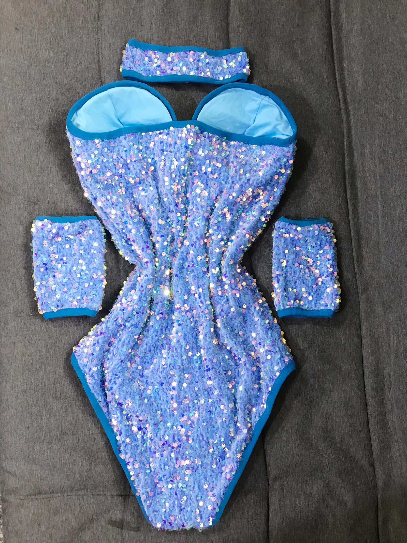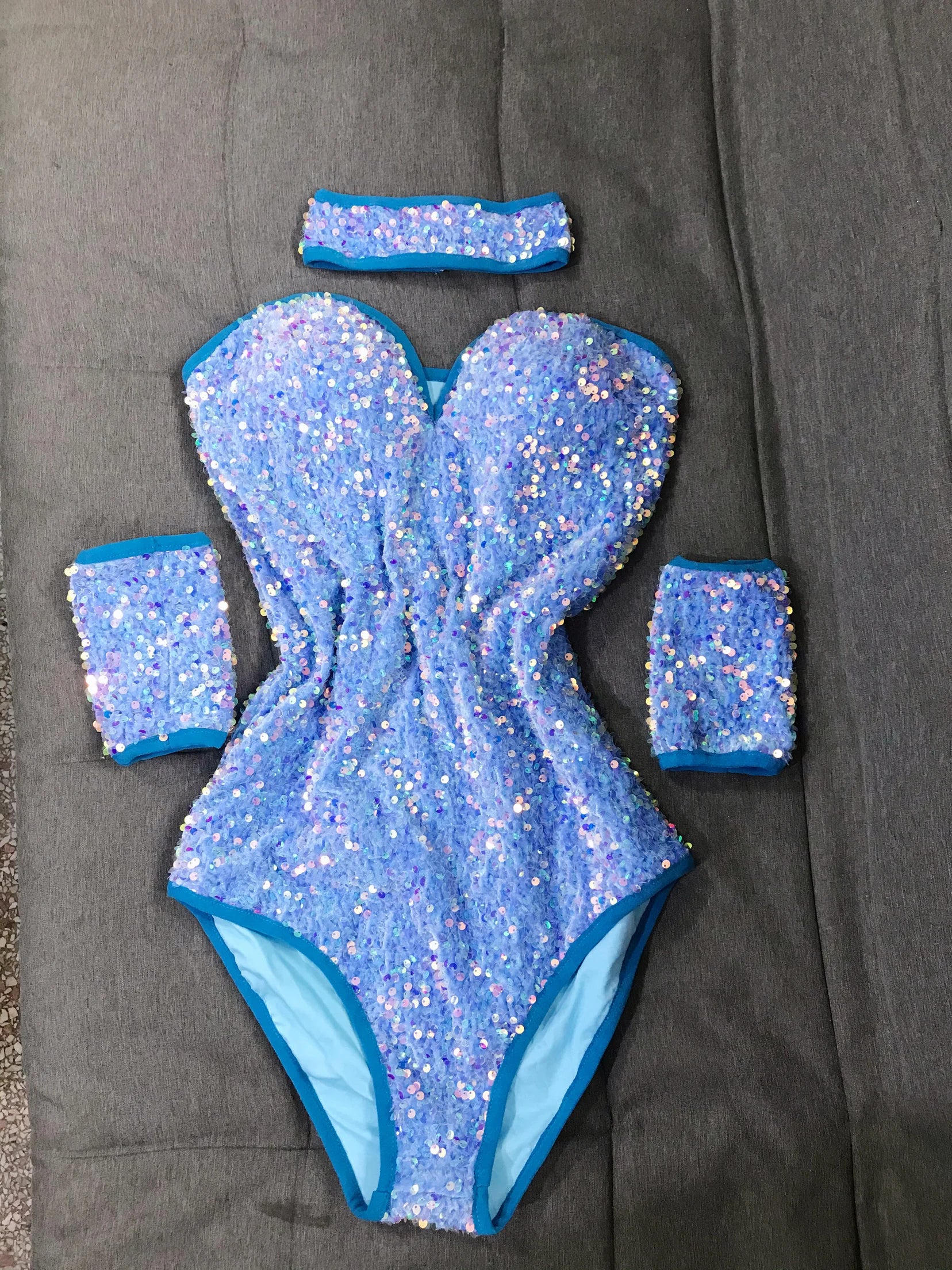 Light up the stage in this blue and pink velvet sequin bodysuit, designed for women dancers and singers. Featuring an alluring, sexy fit with radiant sparkles, it’s perfect for bar and nightclub performances, jazz dance routines, club parties, or rave events. Stand out and shine at every show with this vibrant stage wear!