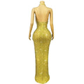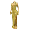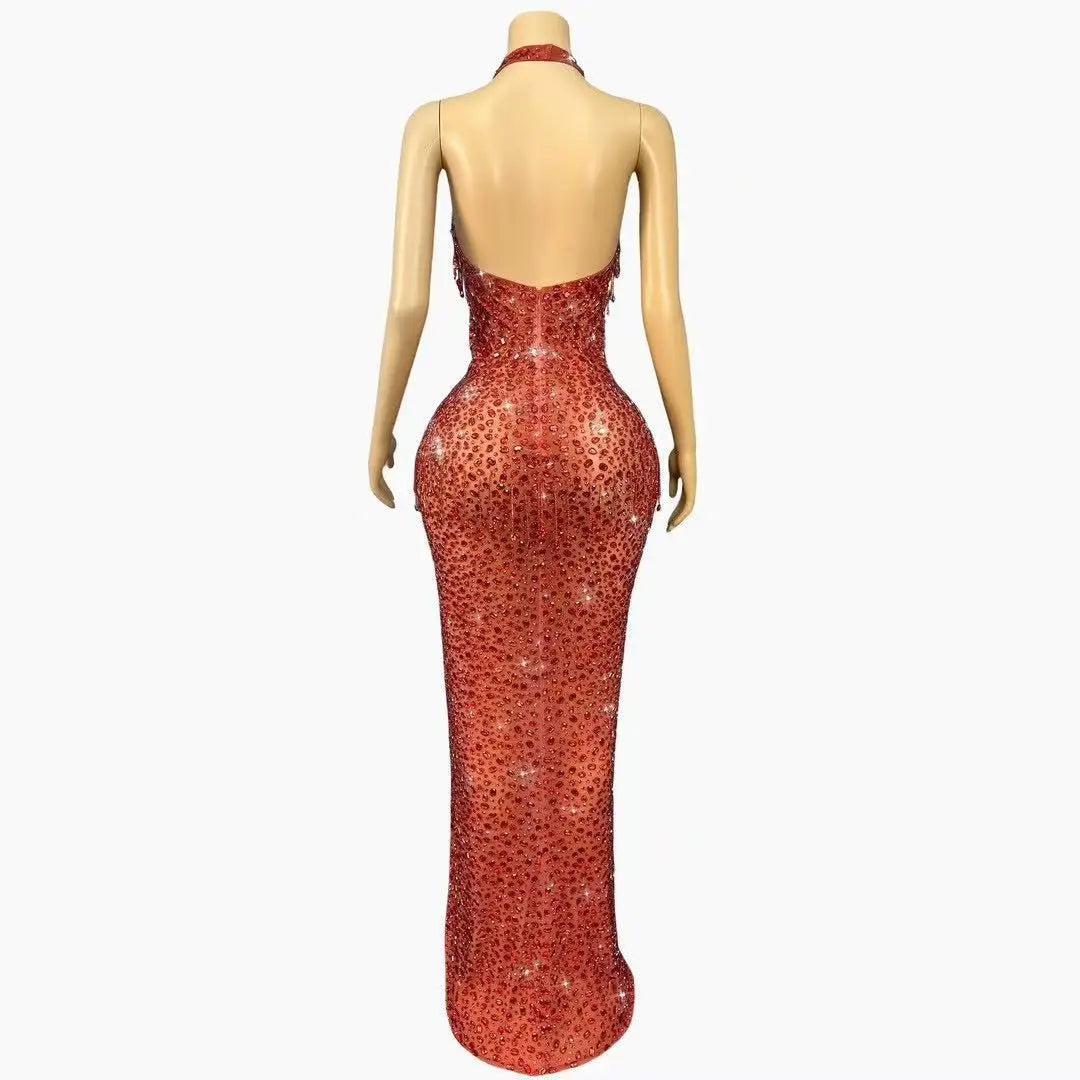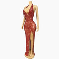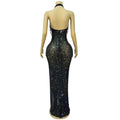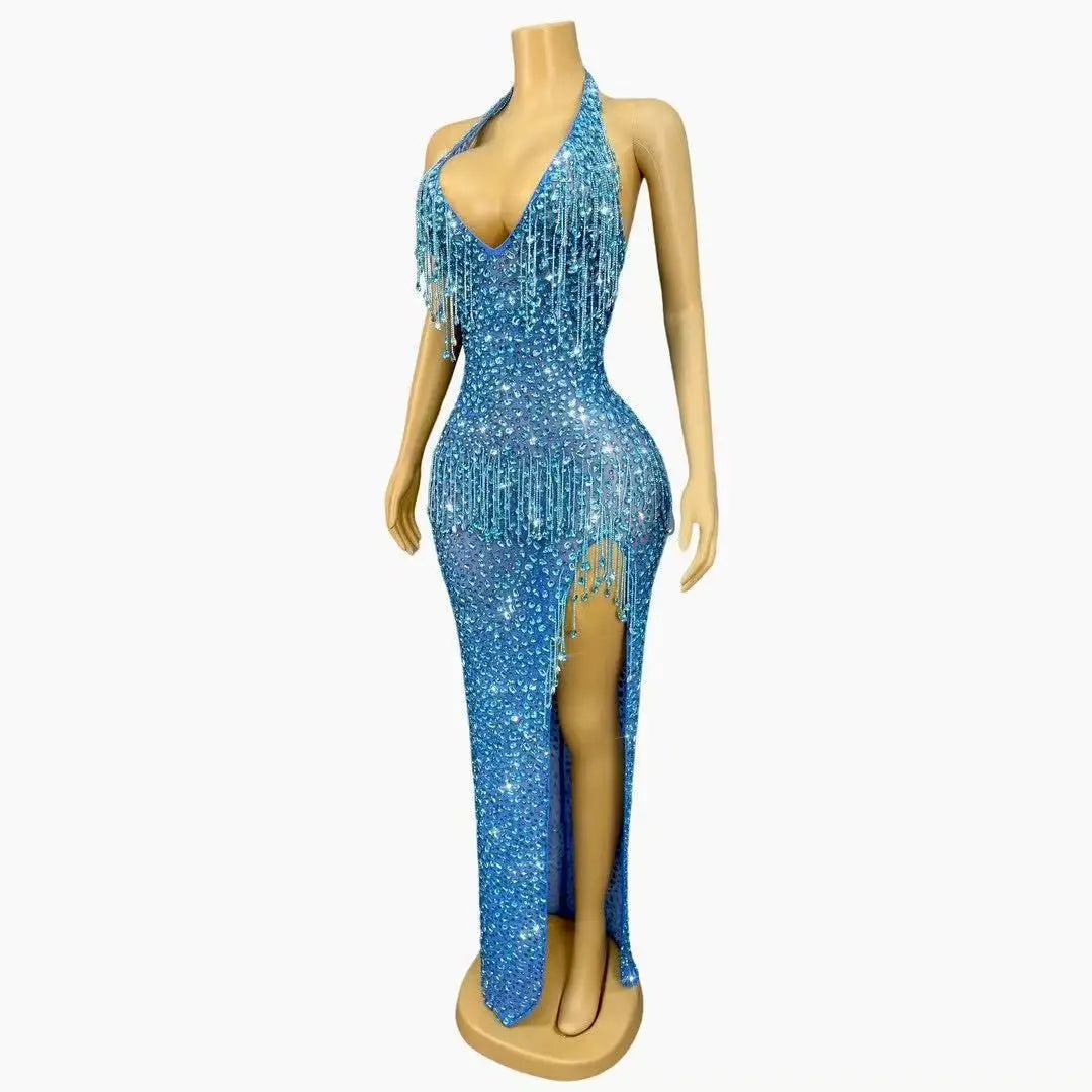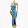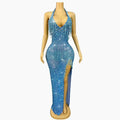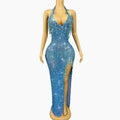 Blue Red Black Rhinestones Crystals Chain Heavy Luxury Gowns Sexy V-neck Backless Dress Women Party Show Photoshoot Stage Wear