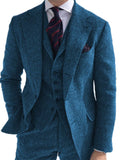 Blue Wide Lapel Herringbone Pattern Blazer Trousers 3pcs Jacket Pants Vest Men'S Set Wedding Clothing Dinner