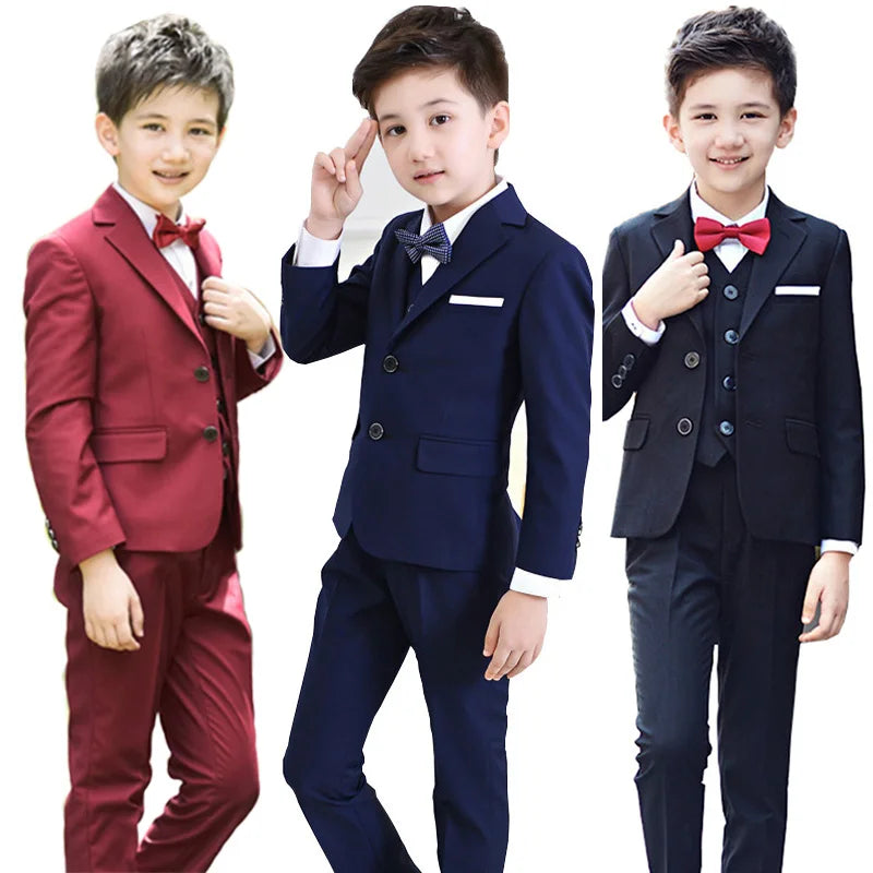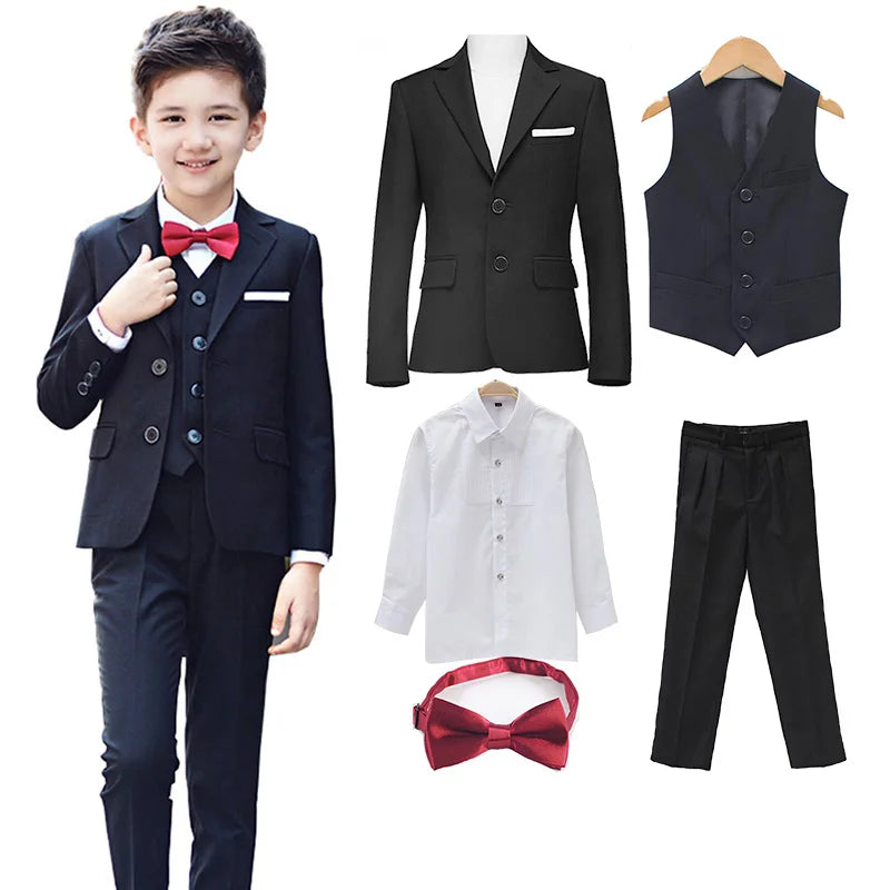 5pcs/set Boys Blazer Suits set (suit+pant+vest+shirt+tie) Kid Boy Wedding Party Suits Blazer Costume Garcon Formal School wears