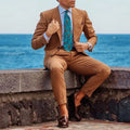 This elegant brown fashion design suit for men is a stylish choice for weddings and special occasions. The bespoke two-piece set includes a jacket and pants, offering a sophisticated and fashionable look for the groom or bridegroom. The design exudes a sense of refinement and style, making it a standout ensemble for the occasion