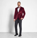 This burgundy velvet formal men's coat suit is a timeless and elegant choice for formal occasions. The two-button groom best man coat is designed with a touch of luxury and is perfect for business settings and weddings. This blazer, featuring a plus size fit, adds a refined and sophisticated touch to any ensemble, making it the perfect choice for a distinguished look