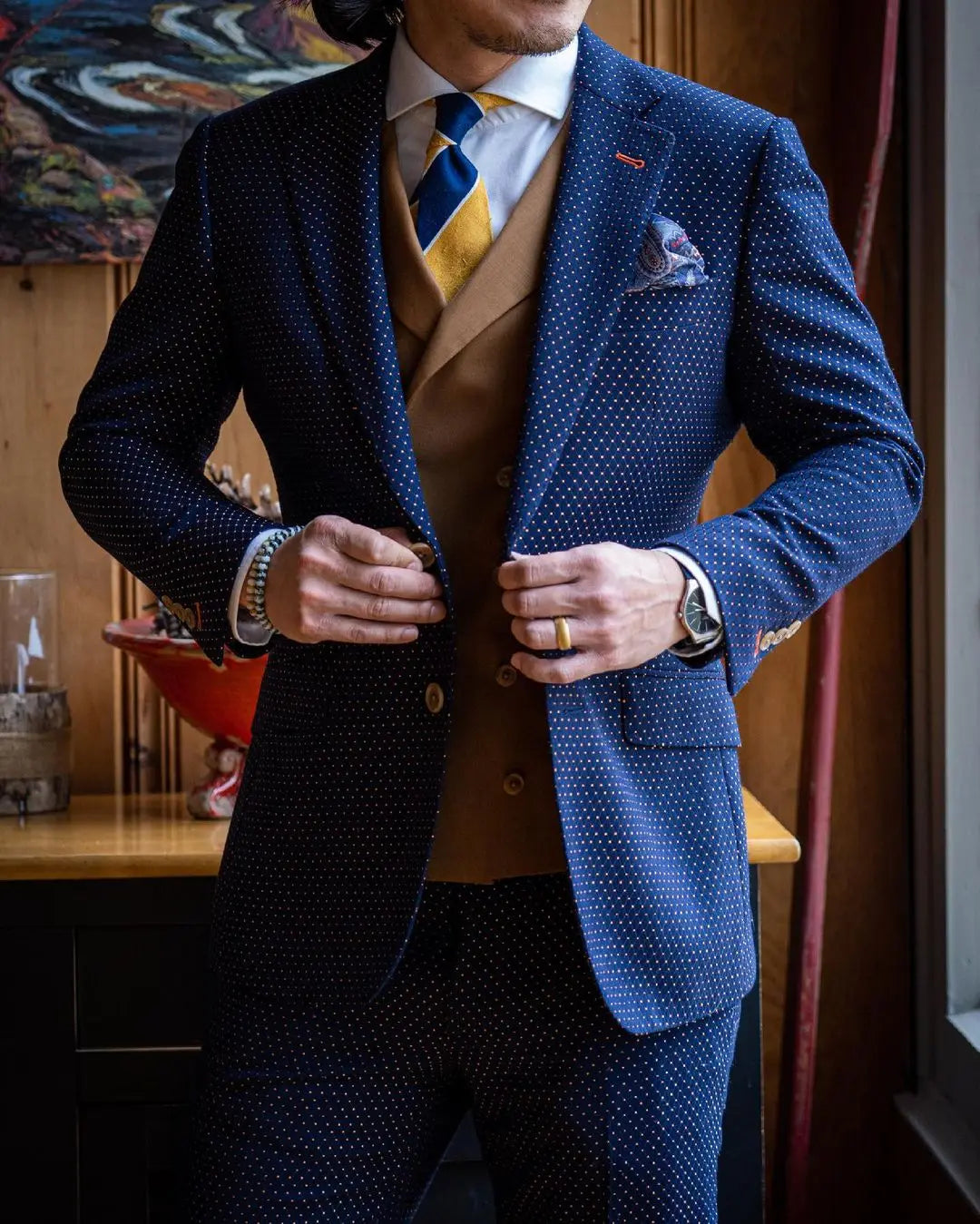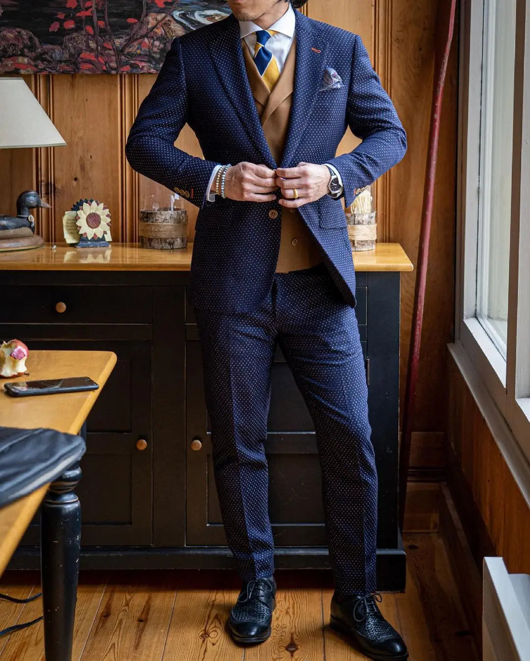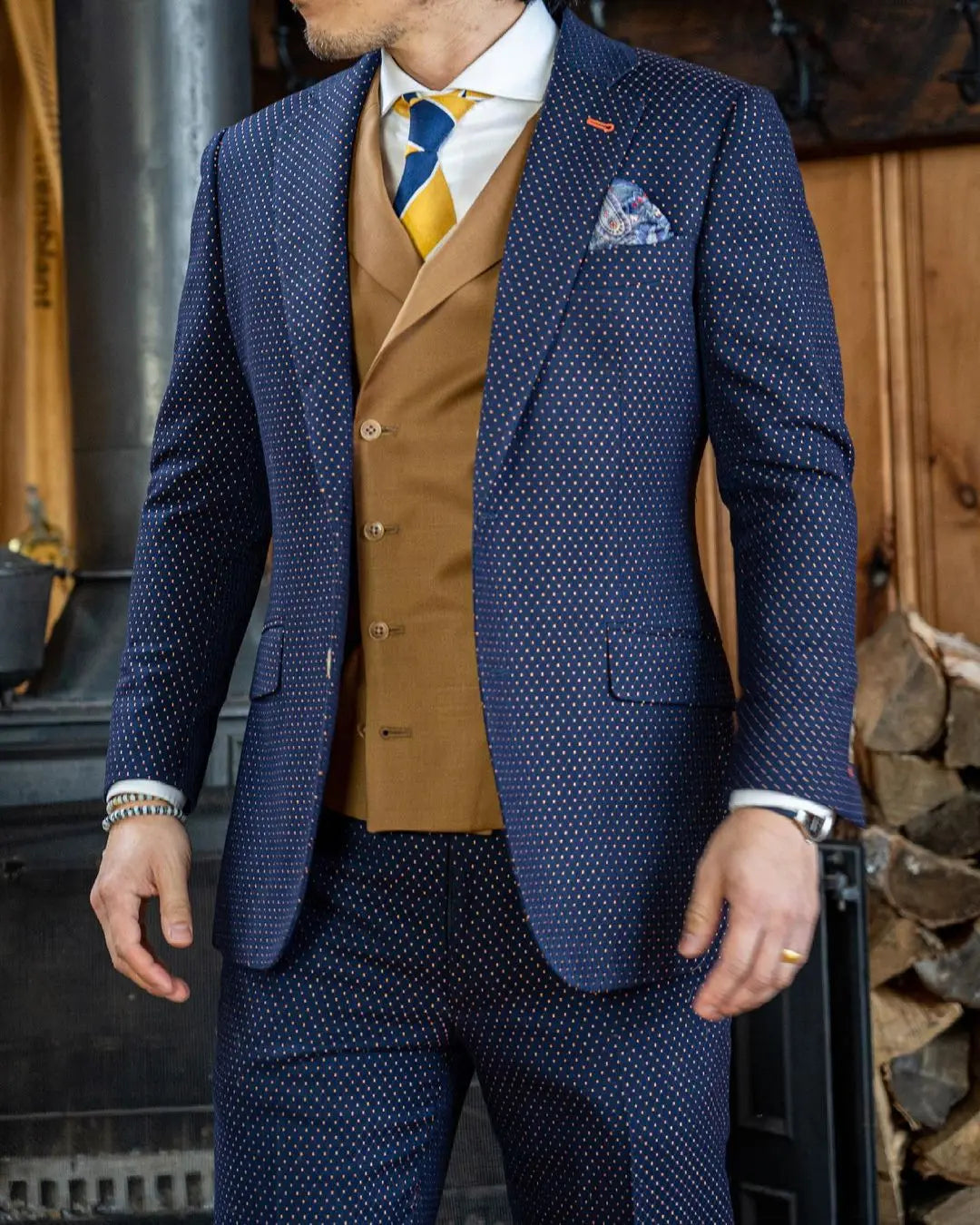 Introducing our Business Men's Suits in a striking Blue Wave pattern, expertly tailored for a perfect fit. This two-piece ensemble includes a sophisticated blazer and matching pants, making it an ideal choice for weddings, formal events, and proms. Designed for the modern groom or any gentleman seeking a polished look, this suit combines elegance with contemporary fashion. With customization options available, you can ensure a unique and personalized fit that reflects your style. Elevate your formal wardrobe with this stylish and versatile suit.