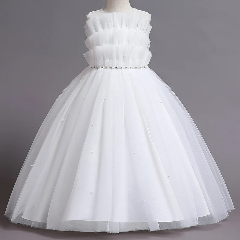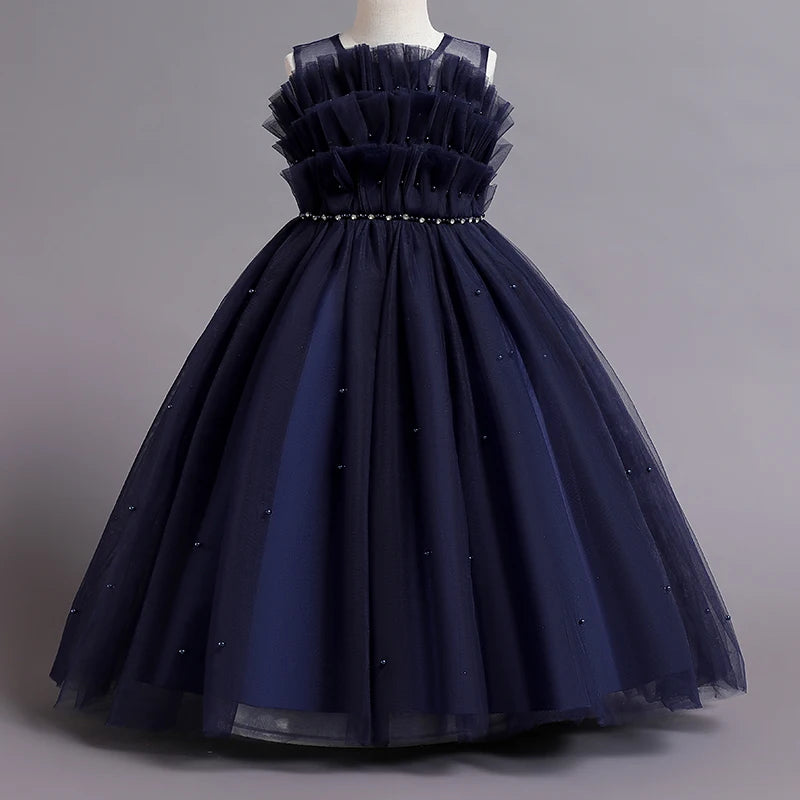 Dress your little princess in this enchanting Children's Dress, perfect for flower girls at weddings, summer events, and special occasions. This dress features a princess-style design with sequin embellishments, bubble sleeves, a long mesh skirt, and sleeveless style, adding a touch of elegance and charm to your child's look. The sequins bring a hint of sparkle and glamour, while the bubble sleeves and sleeveless design give the dress a whimsical and playful touch. The long mesh skirt adds an elegant and graceful flair, making your child feel like a fairy-tale princess. Let your little girl shine in this beautiful gown that will make her stand out and feel special on any memorable day.