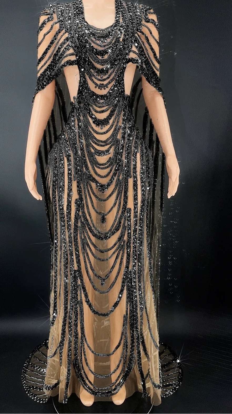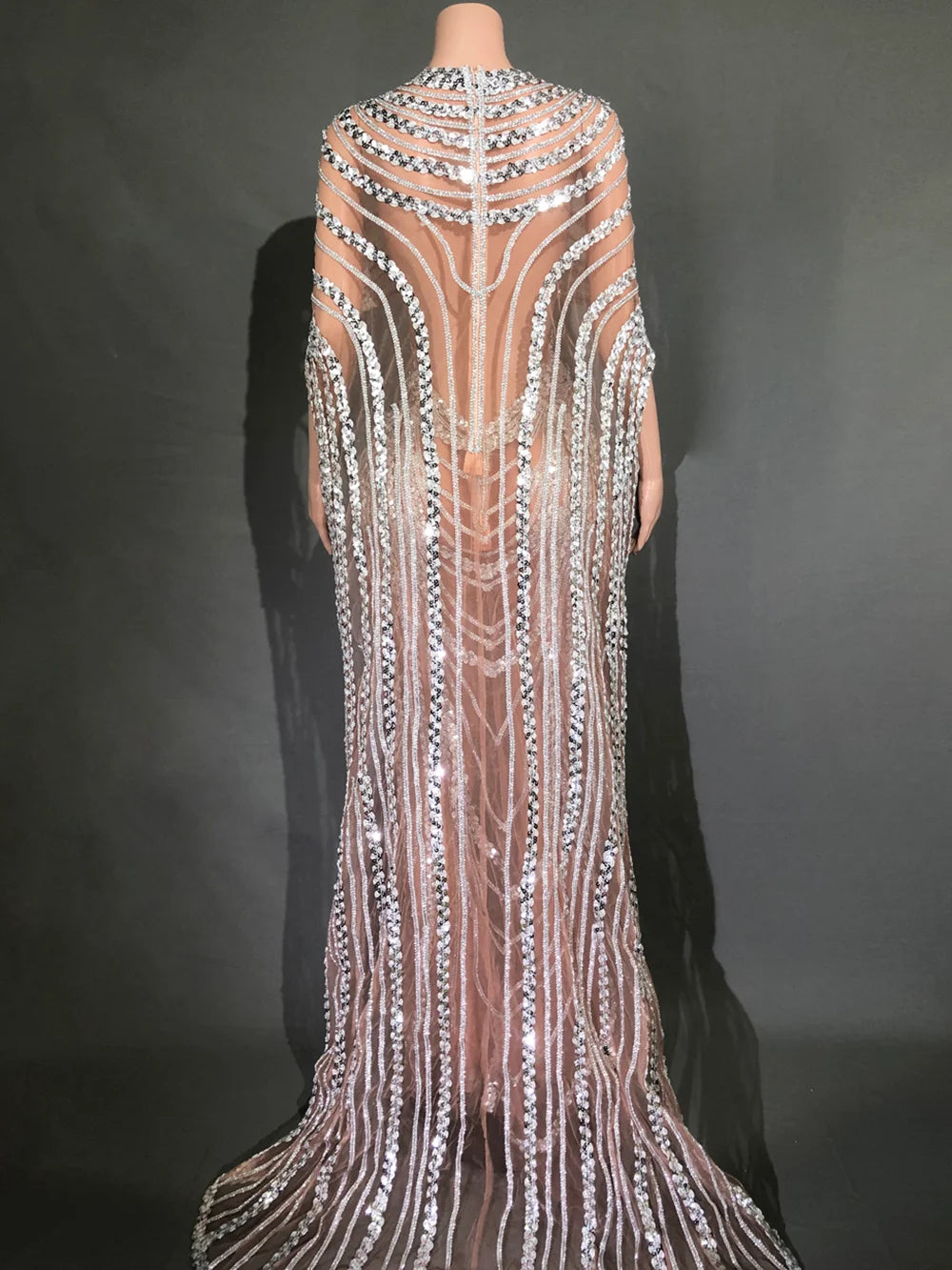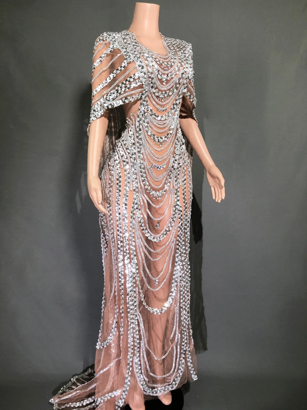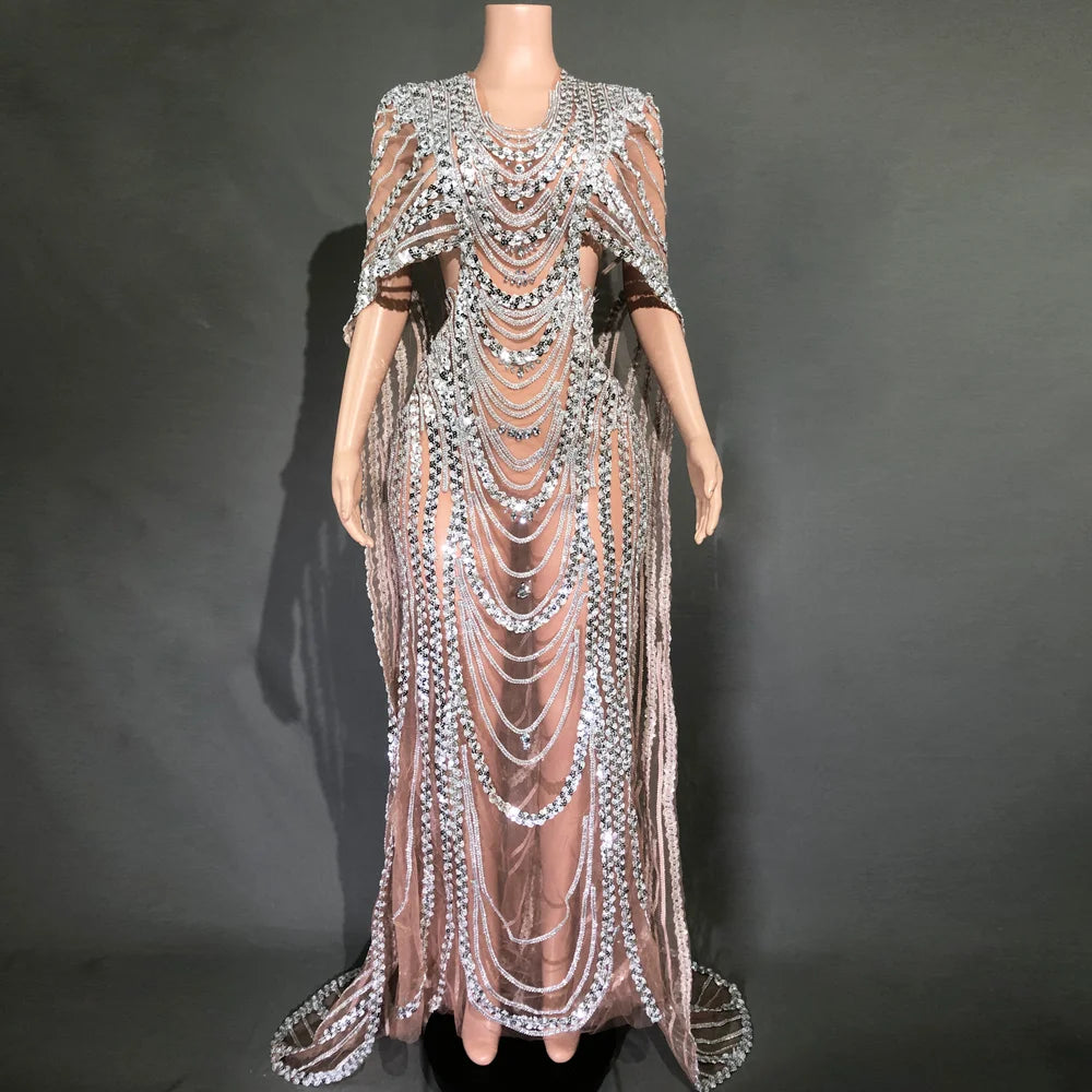 Celebrate Wedding Evening Prom Gown Birthday Long Trains Dress Singer Stage Wear Sexy See Through Show Performance Costume