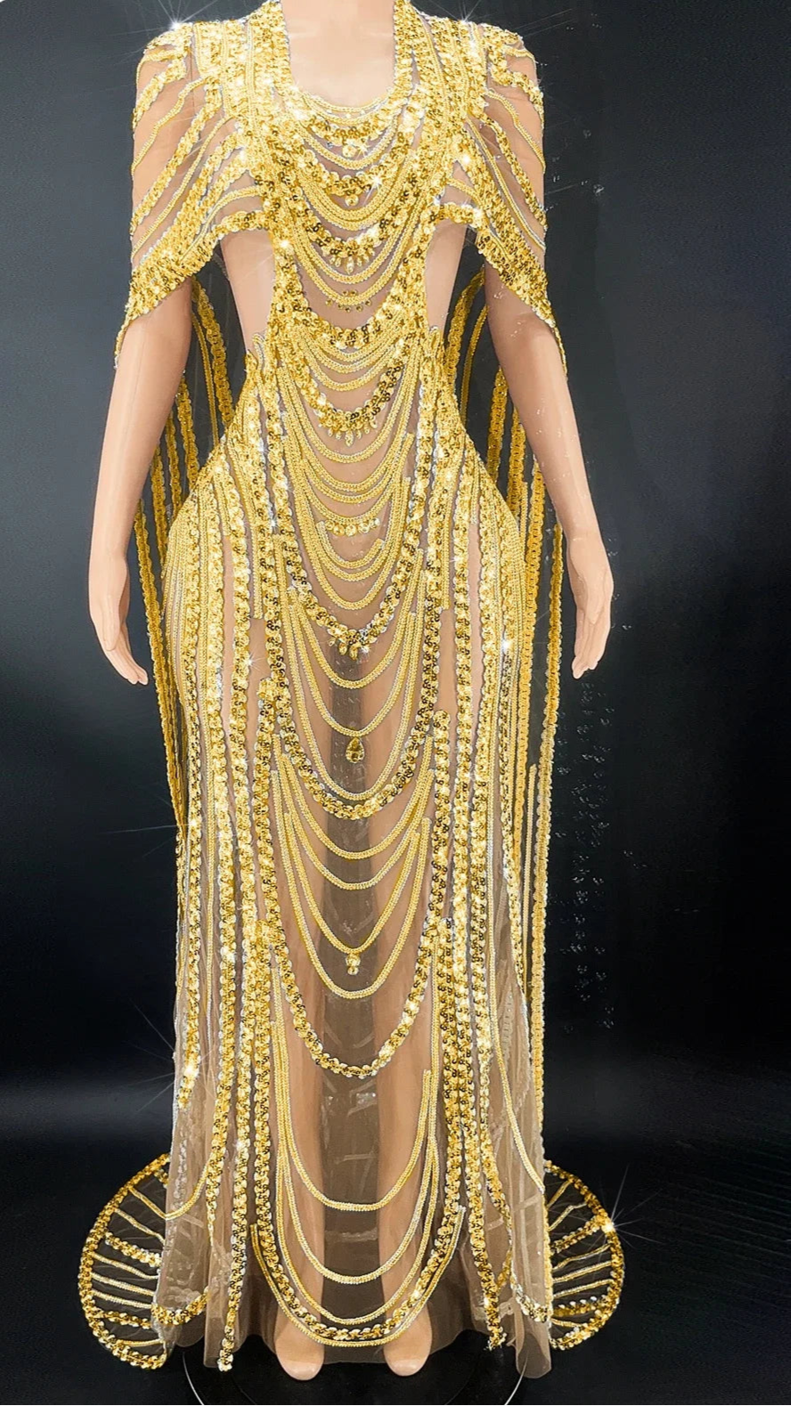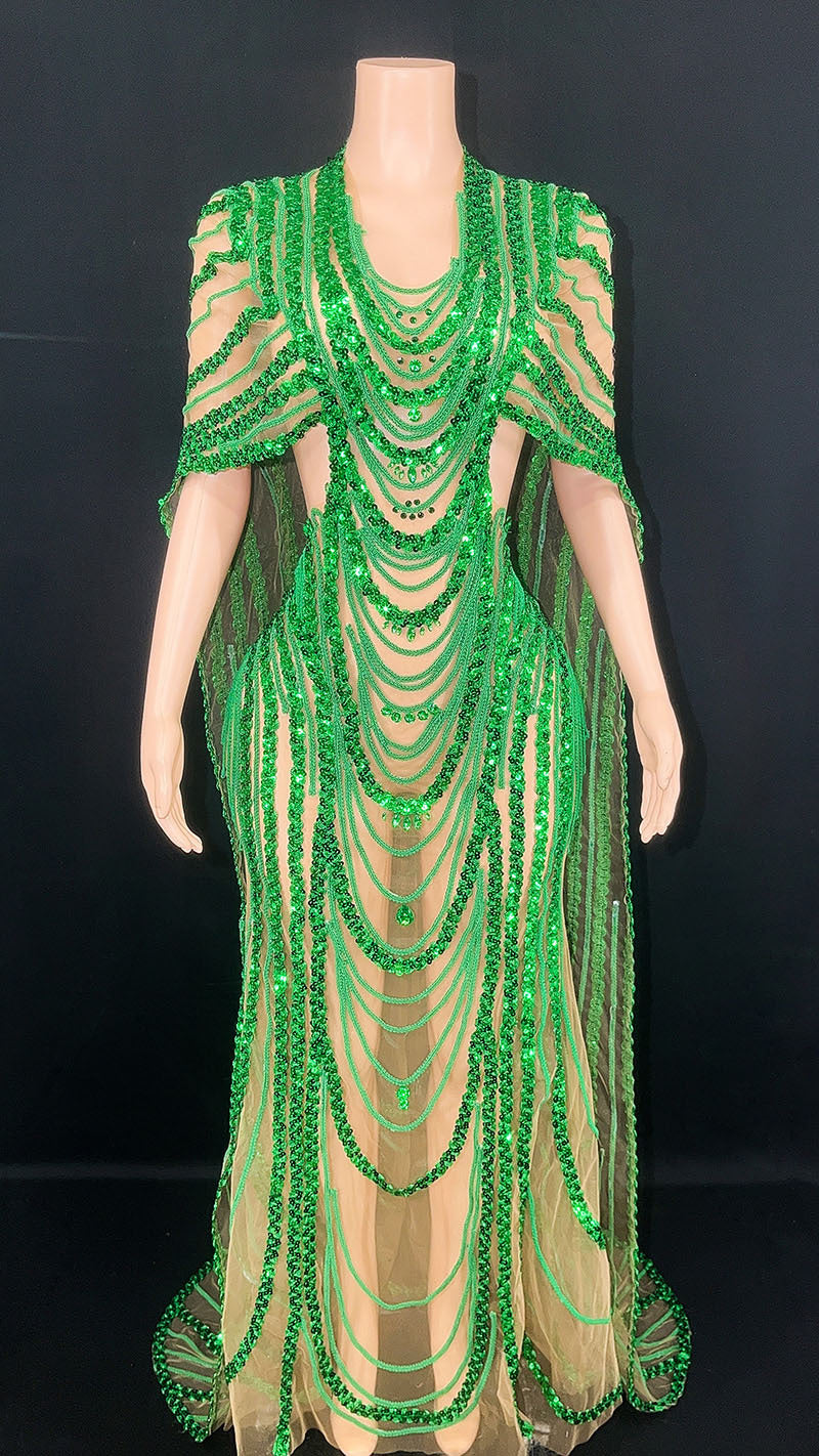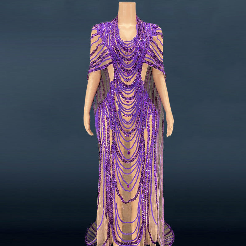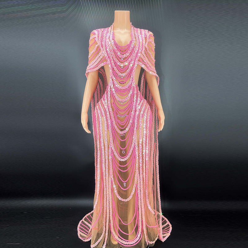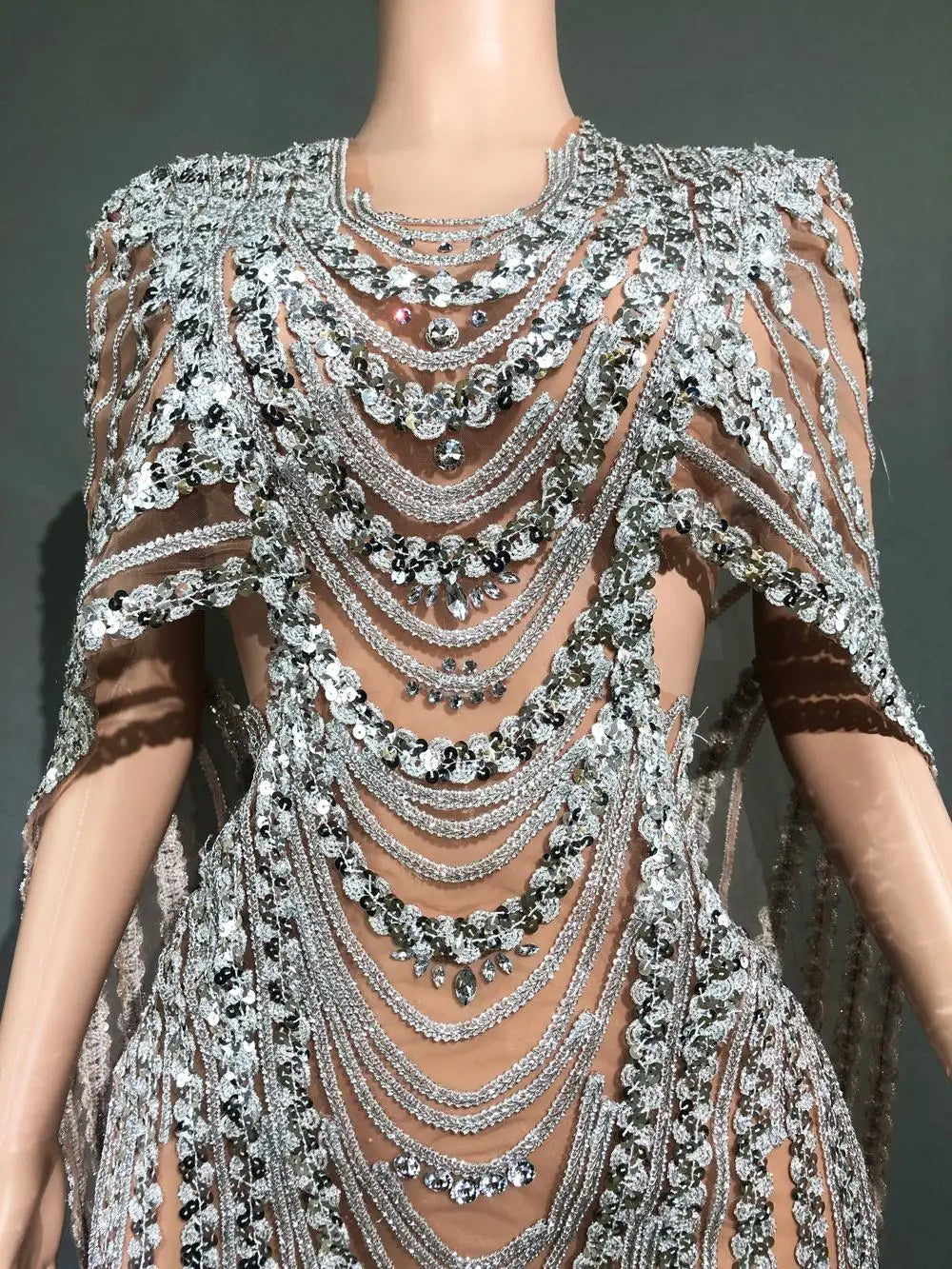 Celebrate Wedding Evening Prom Gown Birthday Long Trains Dress Singer Stage Wear Sexy See Through Show Performance Costume