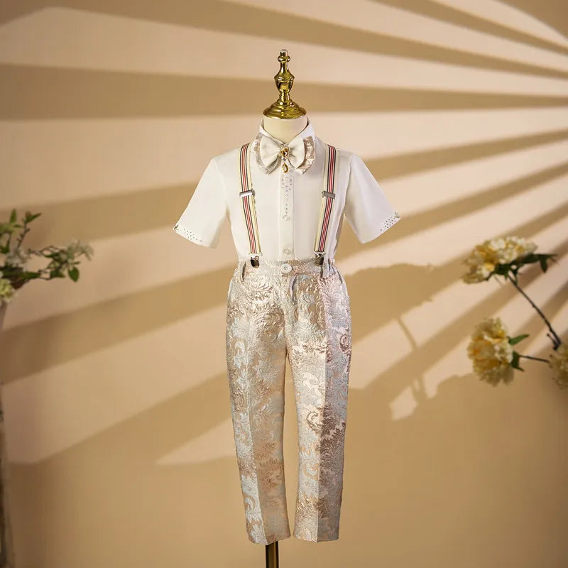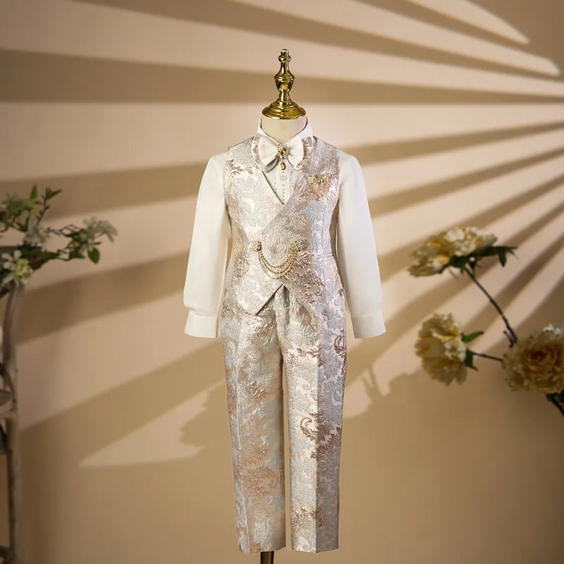 Make every occasion memorable with this children’s formal suit set, perfect for weddings, birthdays, baptisms, parties, and stage performances. Designed with timeless elegance, this outfit features a classic blazer, comfortable vest, and tailored pants—ideal for young hosts and piano recitals. Crafted for both style and comfort, it ensures your boy looks polished and feels confident at every celebration.