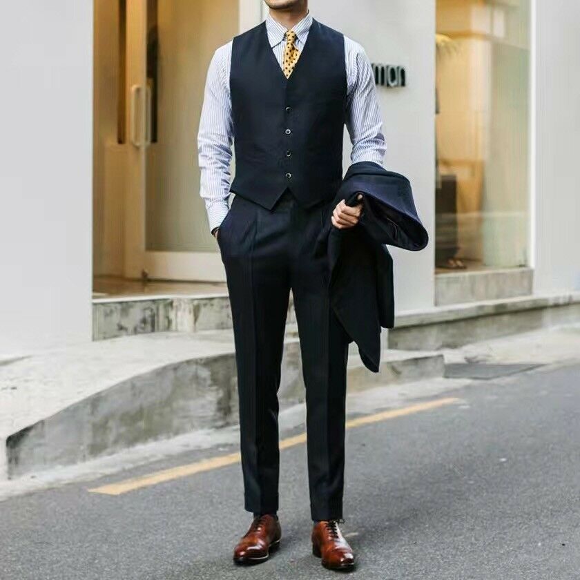 Classic Black Italian men Tuxedos Groom Wedding Suits Two Button Peaked Lapel Plus Size Prom Party Blazer Suit(Jacket+Vest+Pant