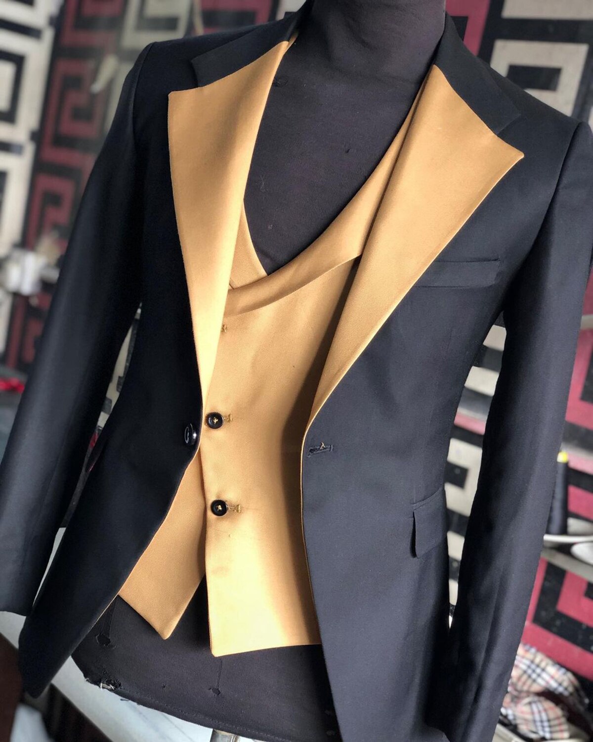 Classic Color Contrast Wedding Men Suits Two-Pieces Coat Vest Closure Collar Custom Made Groom Costume Party