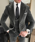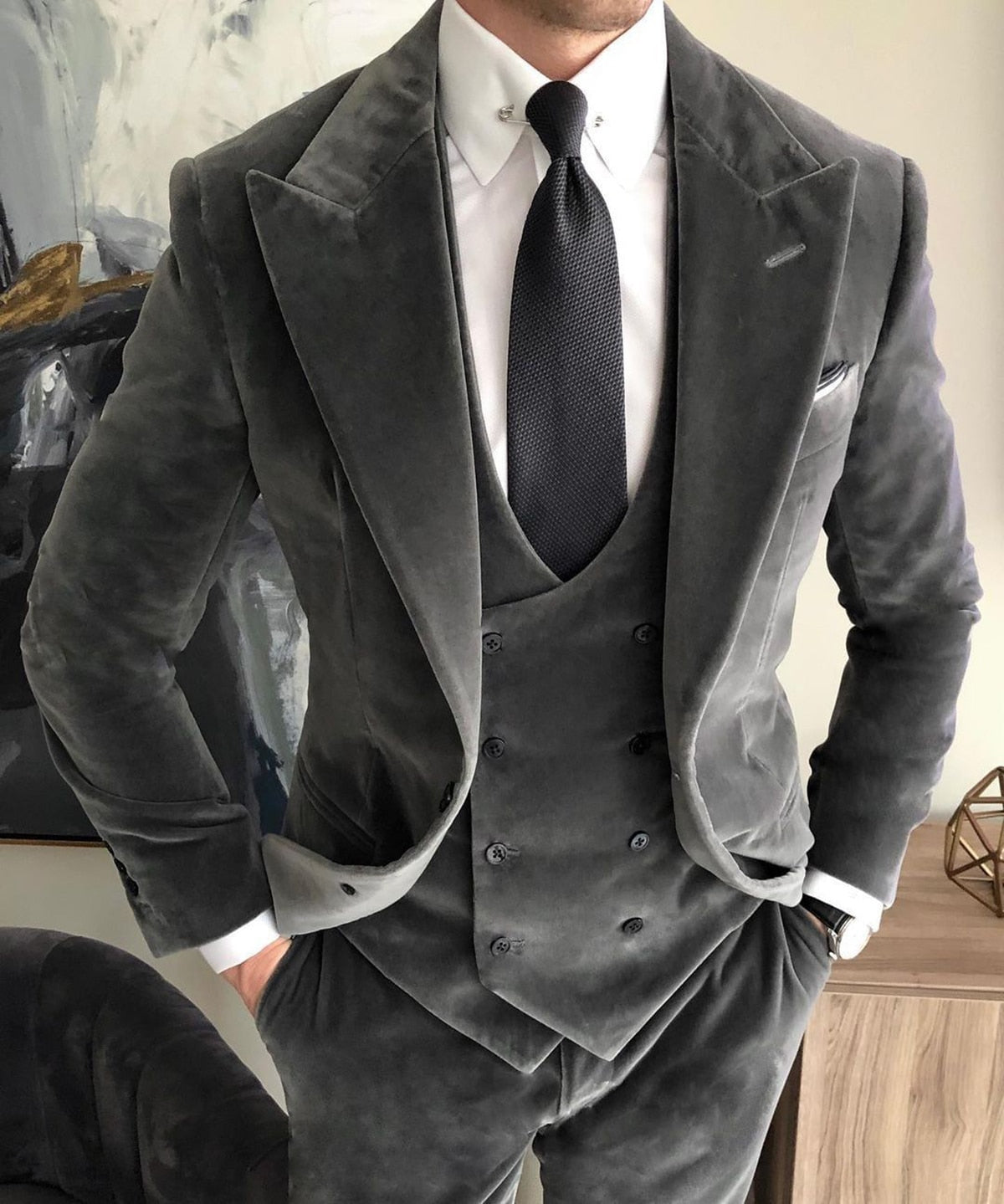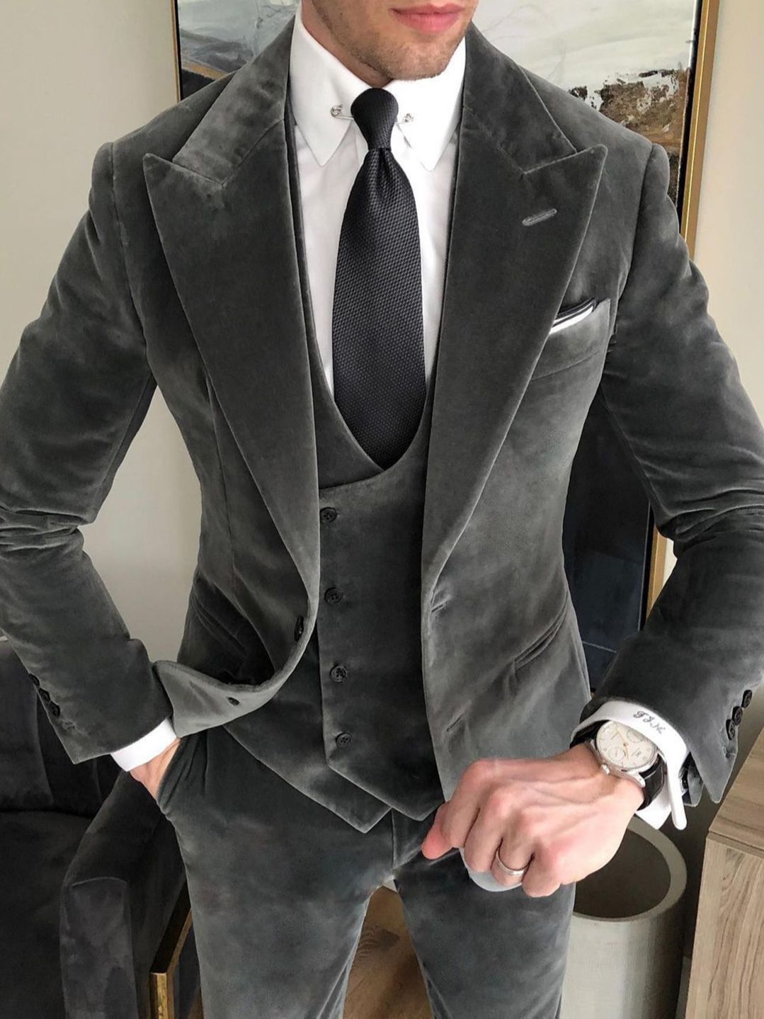 Classic Wedding Men Suits Grey Suede Closure Collar There-piece Tuxedos for Men High Qualit Business Occasion Costume Made