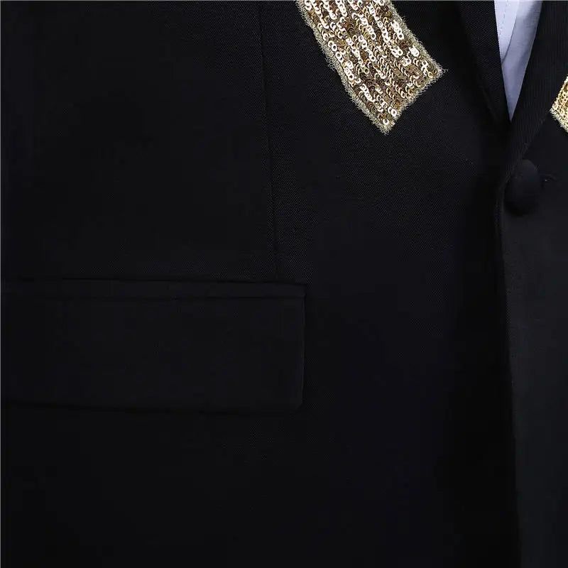 Elevate your formal wear with our Classic Wedding Men's Suit, featuring stunning sequin appliqué for a touch of glamour. This fashionable coat and pant ensemble is custom-made to ensure a perfect fit, making it an ideal choice for grooms and special occasions. Designed for the modern gentleman, this handsome tuxedo combines elegance with contemporary style, perfect for parties and formal events. Make a statement on your special day with this exquisite tuxedo that embodies sophistication and charm.