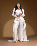 Elevate your formal wardrobe with this exquisite 2-piece suit set, featuring a tailored blazer jacket with an elegant train and perfectly fitted trousers. Ideal for weddings, evening events, and parties, this custom-made ensemble combines sophistication and style, ensuring you stand out on any occasion. Perfect for the modern woman seeking both comfort and class in her formal attire.