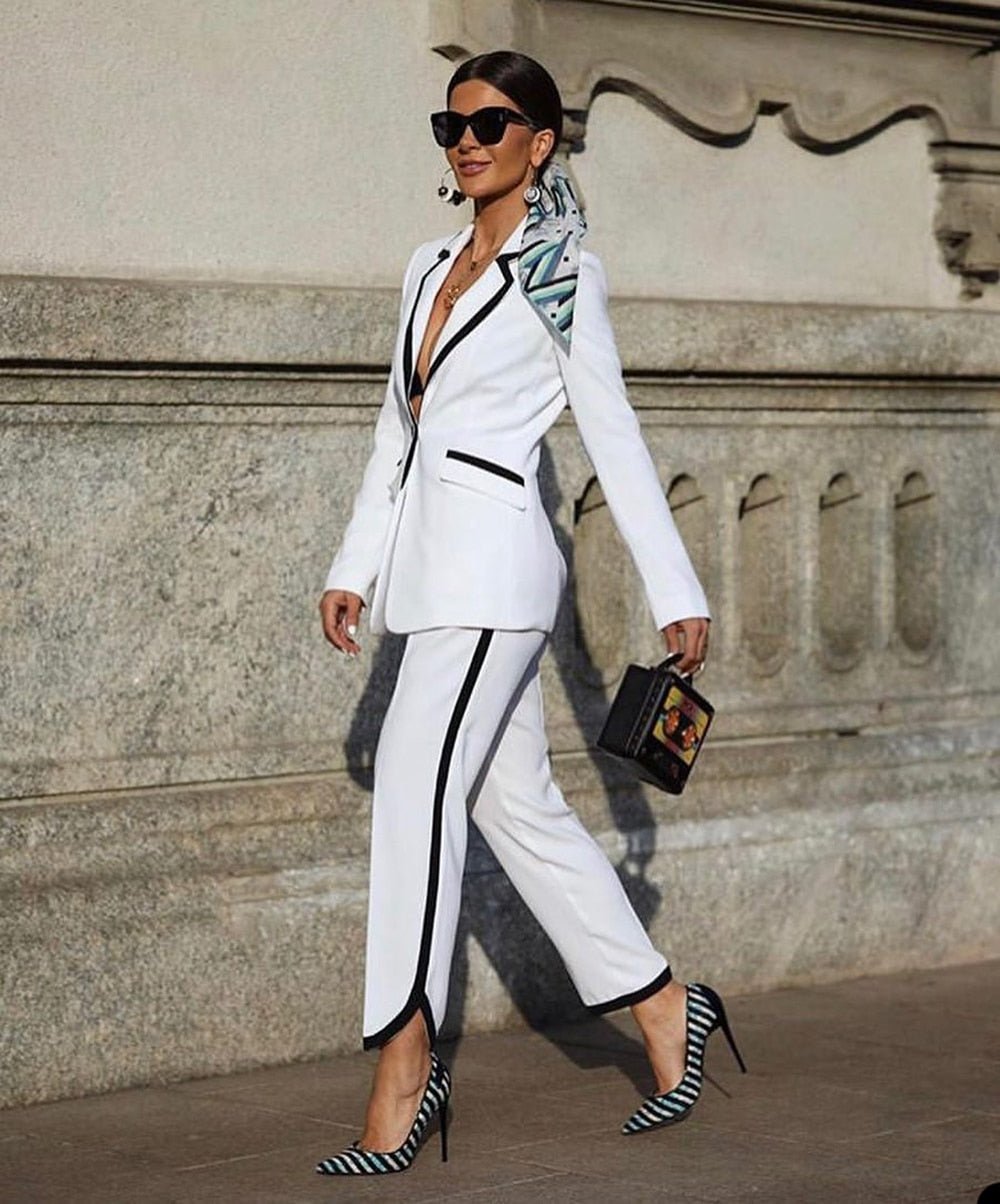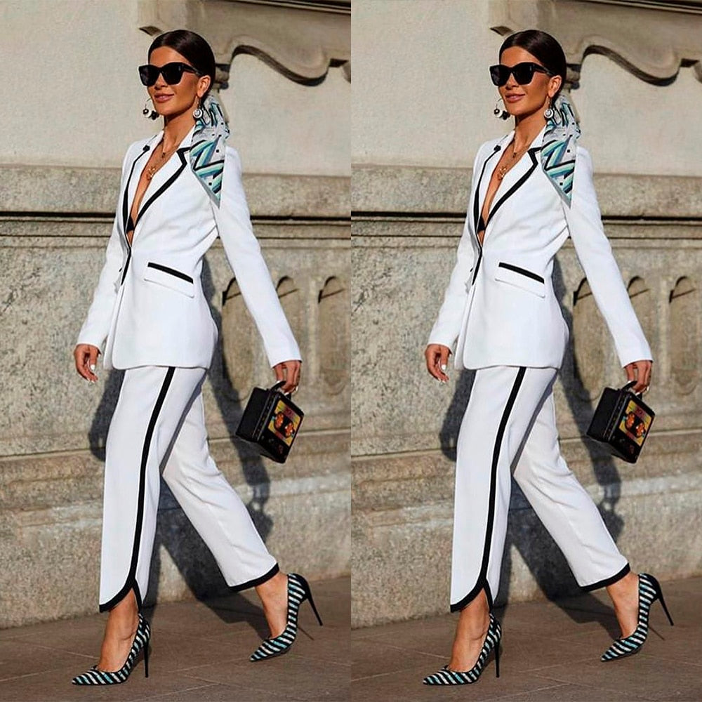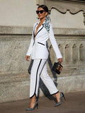 Color matching Mother of the Bride Pants Suits Plus Size Black White Blazer Trousers Set Wedding Wear 2 Pieces(Jacket+Pants)