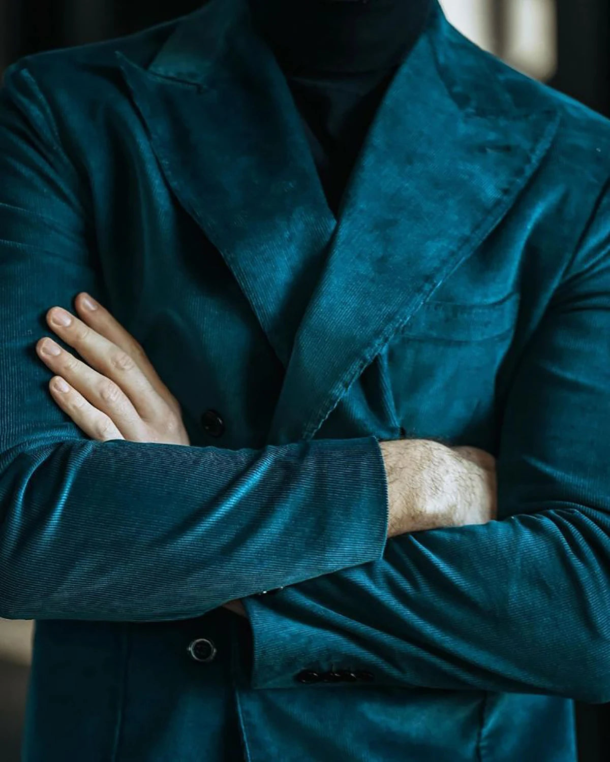 Introducing our Corduroy Show Wedding Men's Suit, a stylish and unique choice for grooms and party attendees. This tailor-made two-piece tuxedo includes a sophisticated jacket and matching pants, crafted from high-quality corduroy for a distinctive look. Perfect for weddings, parties, and performances, this blazer offers both comfort and elegance, making it an ideal costume for singers and grooms alike. Stand out on your special day or at any formal occasion with this fashionable and versatile suit that showcases your individuality and style.