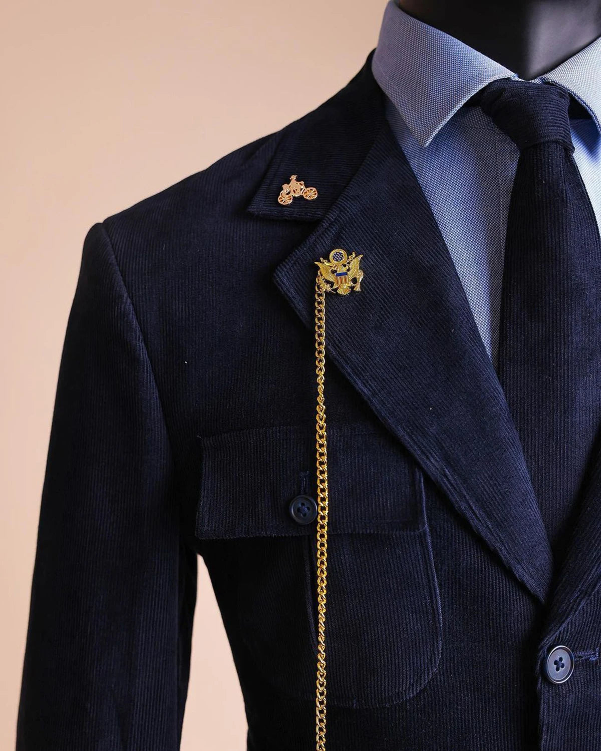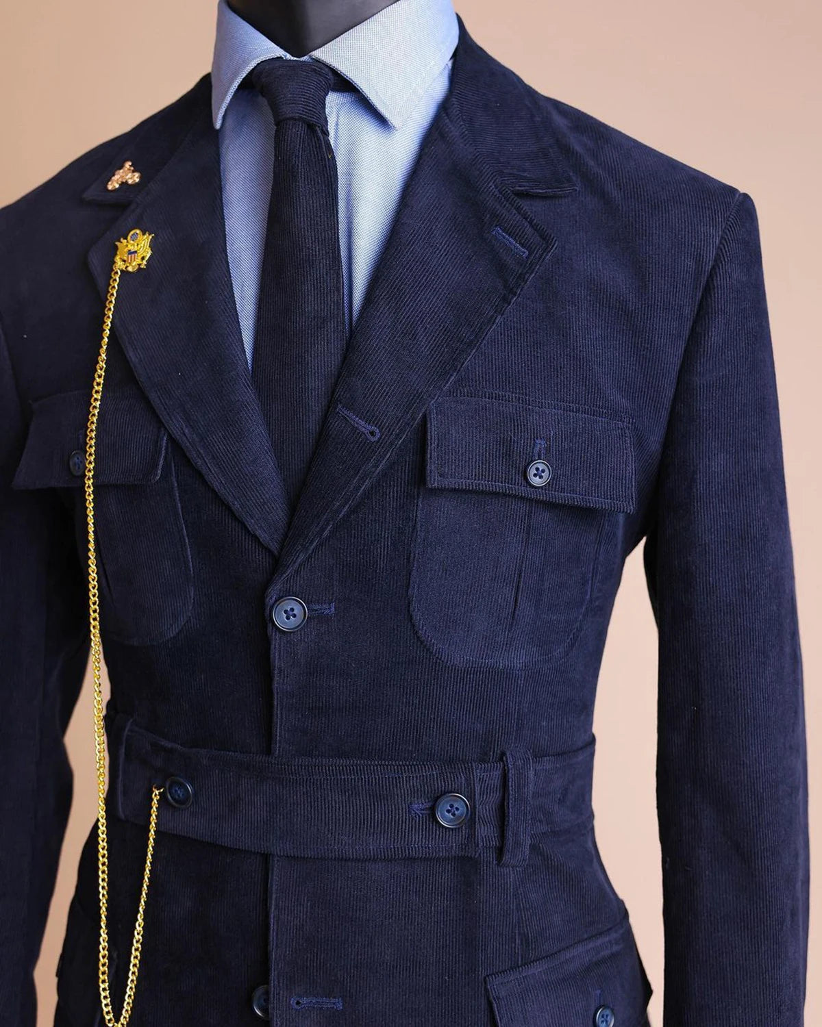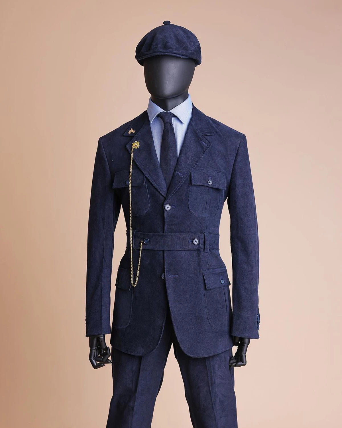 Corduroy Unique Men Suit Tailor-Made 2 Pieces Blazer Pants With Belt Formal Business Causal Work Wear Party Tailored