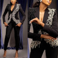 Crystal Tassel Mother of Bride Dresses Luxury Beading Jacket African Women Pencil Pants Slim Fit Blazer 2 Piece Set