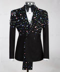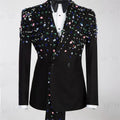 Crystals Black Men Suits Pants Set 2 Pcs Beading Blazer+Trouser Customized Groom Wedding Tuxedo Cotton Formal Office Prom Jacket