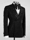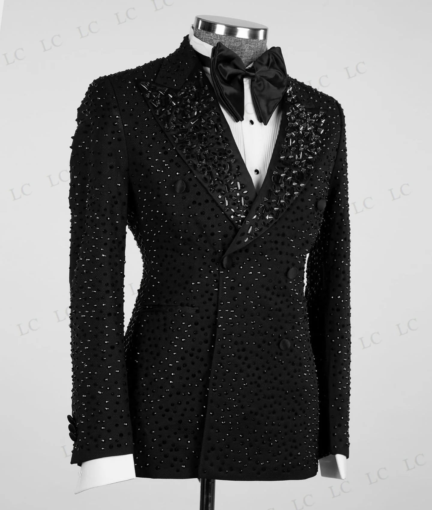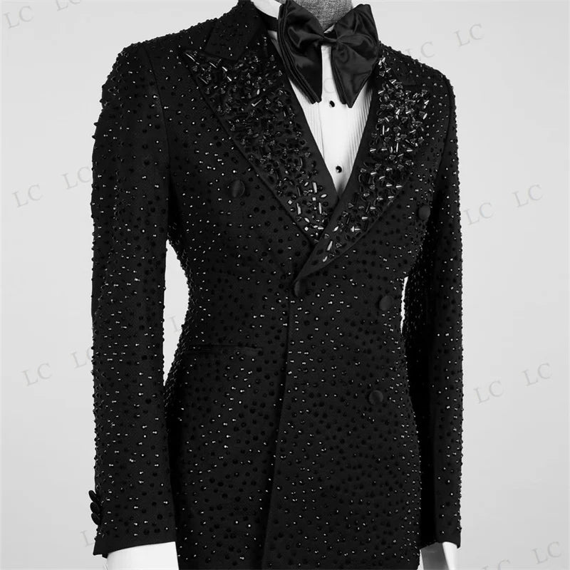 Crystals Luxury Men Suits 2 Pieces Blazer One Button Beaded Diamonds Prom Tuxedo Slim Wedding Groom Plus Size Costume Homme