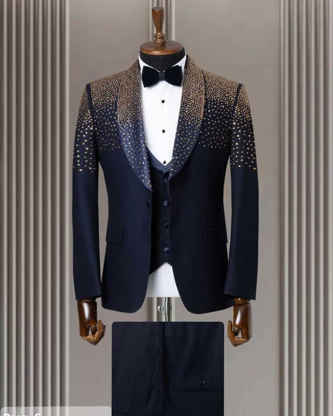 Step into the spotlight with this luxury men’s suit set, featuring a two-piece ensemble with a dazzling crystal-embellished blazer and matching tailored trousers. Designed for ultimate elegance, the shiny finish makes it perfect for weddings, proms, and formal office events. The jacket’s refined cut and sparkling details blend sophistication with modern flair, while customizable tailoring ensures a flawless fit. Ideal for grooms or anyone seeking to make a bold, stylish impression at any formal occasion.
