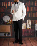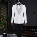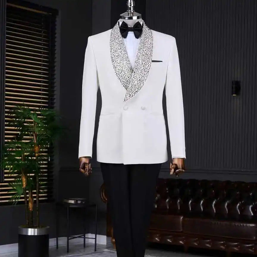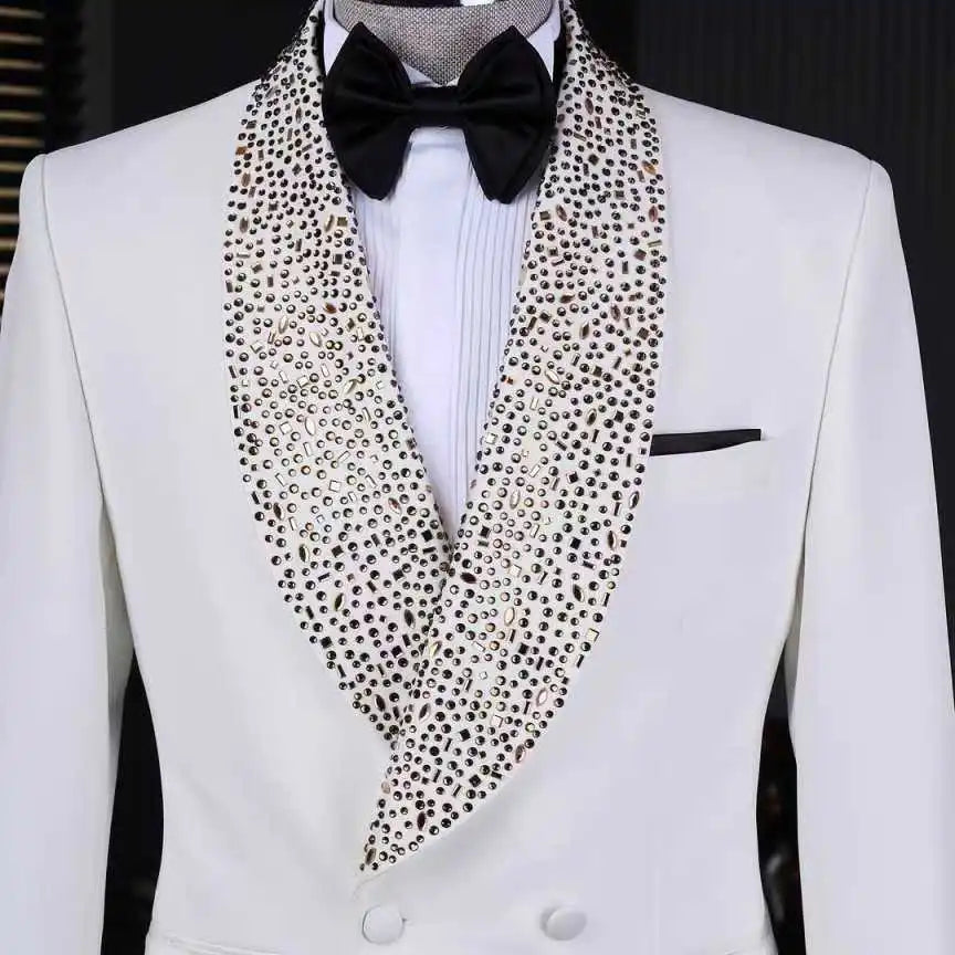 Crystals Men Suit Set 2 Piece White Blazer+Black Pant Trousers Customized Formal Office Jacket Prom Wedding Tuxedos Coat