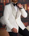 Make a striking entrance with the Crystals Men Suit Set — a beautifully coordinated two-piece ensemble featuring a crisp white blazer paired with classic black trousers. This design blends bold contrast with refined tailoring, creating a versatile formal look perfect for weddings, proms, red-carpet events, and upscale office functions where you want to stand out with elegance.