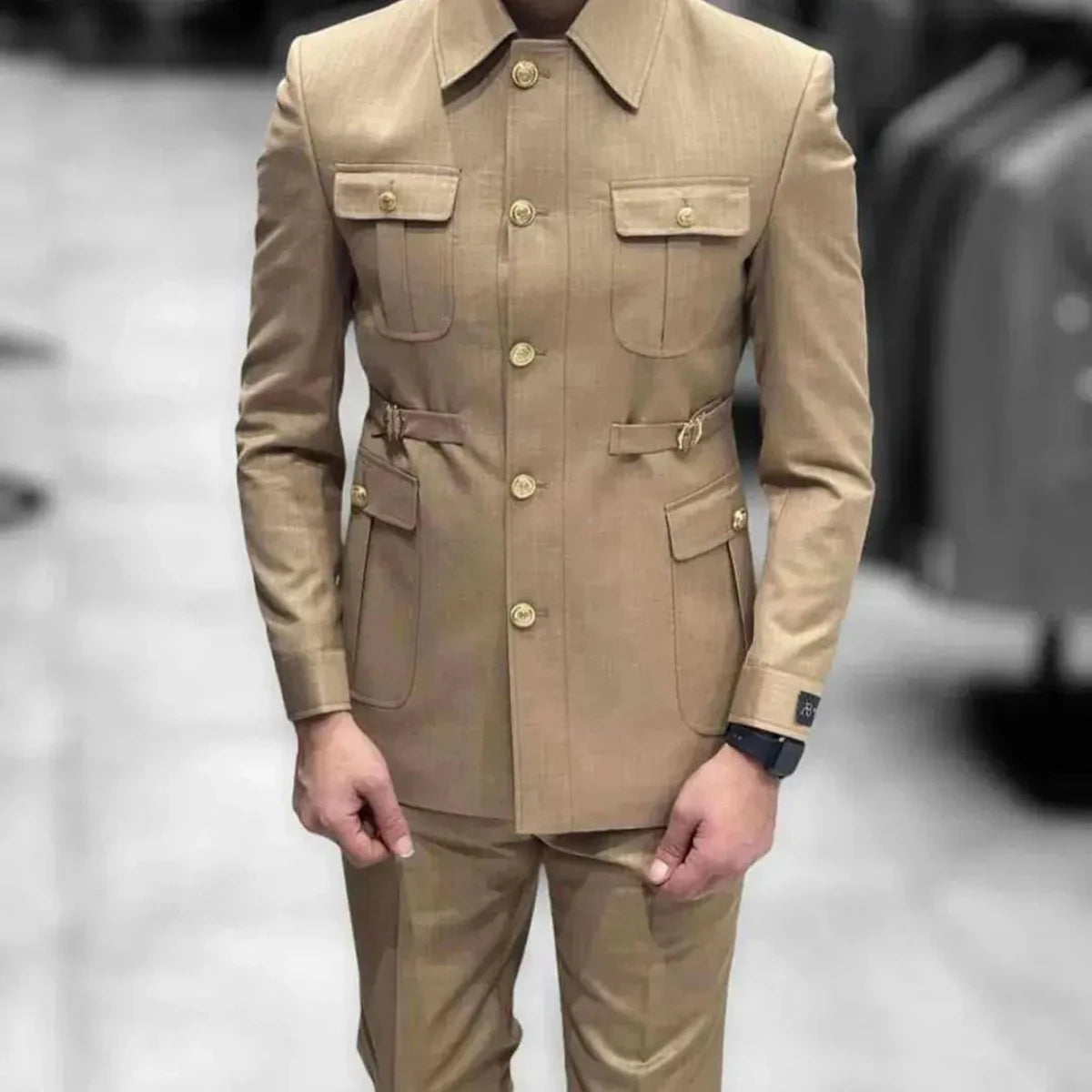 Custom Stylish Chinese Style Men’s Suits with Elegant Stand Collar for Weddings and Formal Events - Variety of Colors Available