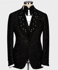 This customized groom tuxedo blazer is a stunning piece featuring pearls and crystal embellishments. Designed with two vents for comfort and style, this men's blazer is a statement piece perfect for special occasions. With its luxurious detailing and elegant design, this jacket is sure to make you stand out at any event.