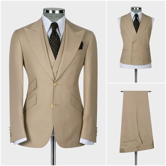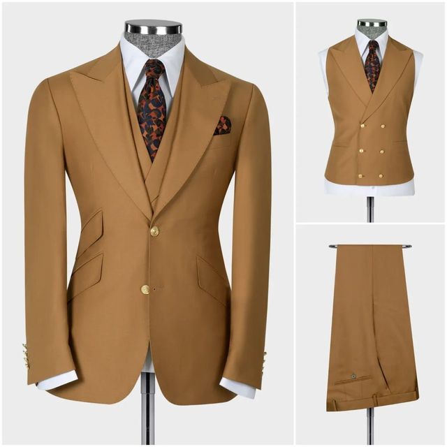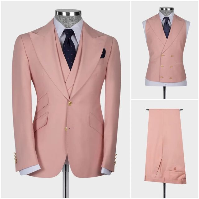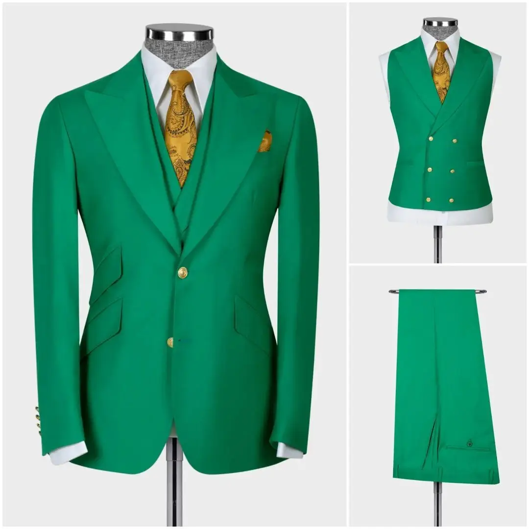 Dark Blue Men's Suit Coat Pants Vest 3Pcs Set Man Suits Slim Fit Outfit Blazer Trousers