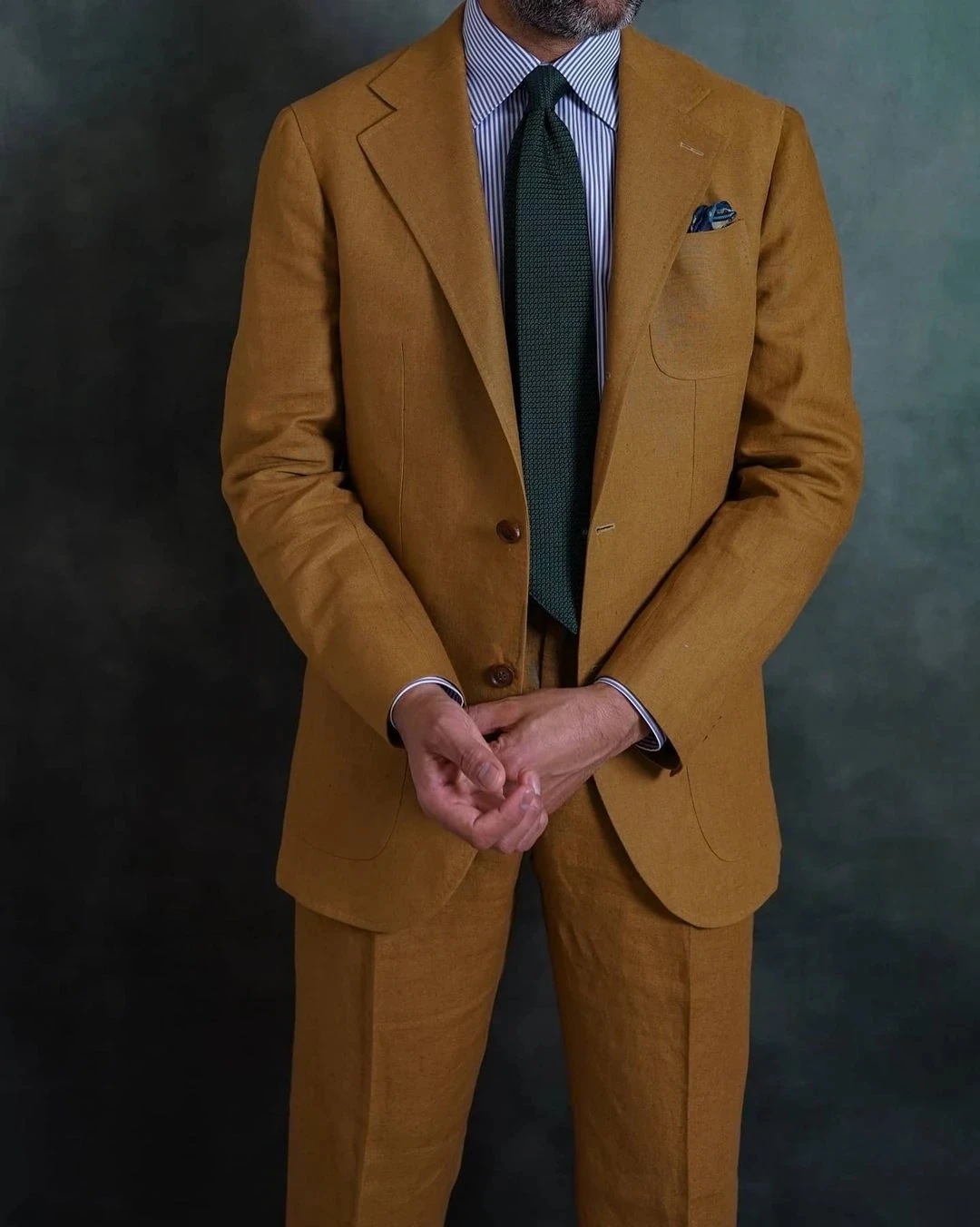Dark Yellow Notch Lapel Men Suits Costume Homme Wedding Groom Tuxedos Prom Slim Fit Blazer Trousers 2Pcs Jacket+Pants