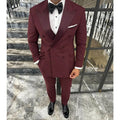 Make a striking entrance on your wedding day or at any formal event with this impeccably tailored double-breasted peak lapel tuxedo set. Designed for the modern groom and style-conscious gentleman, this 2-piece ensemble includes a sharply cut blazer and matching trousers that balance classic tailoring with contemporary detailing. The double-breasted blazer features a bold peak lapel that draws the eye upward, broadening the shoulders for a confident, commanding silhouette. Precision stitching, structured shoulders, and a fitted waist create a sculpted look that flatters a variety of body types.