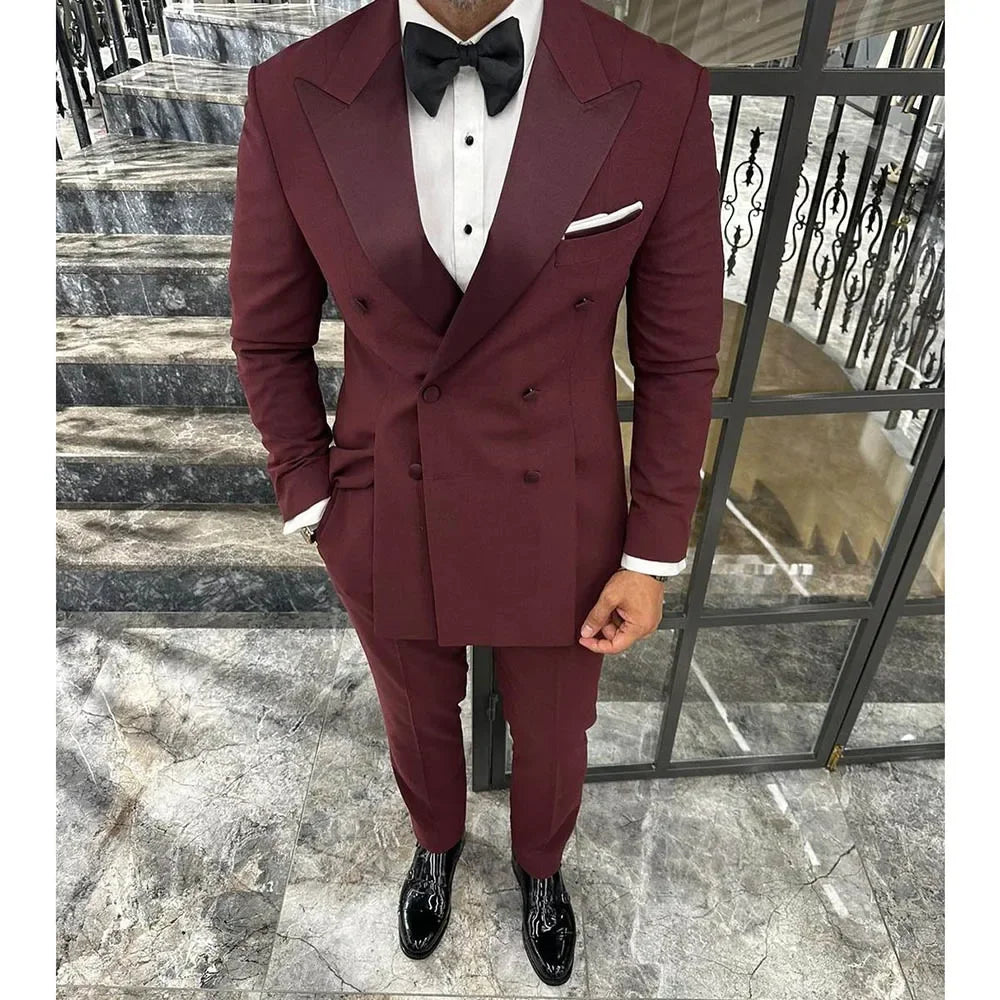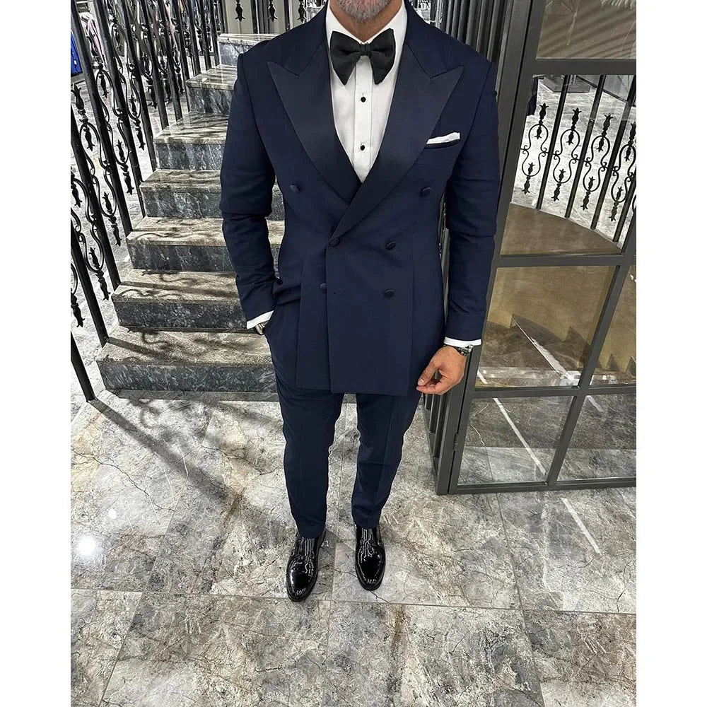 Men Wedding Suits Double Breasted Peak Lapel Tuxedos Groom Party 2 Pcs Blazer Pants Business Party Customized Suit