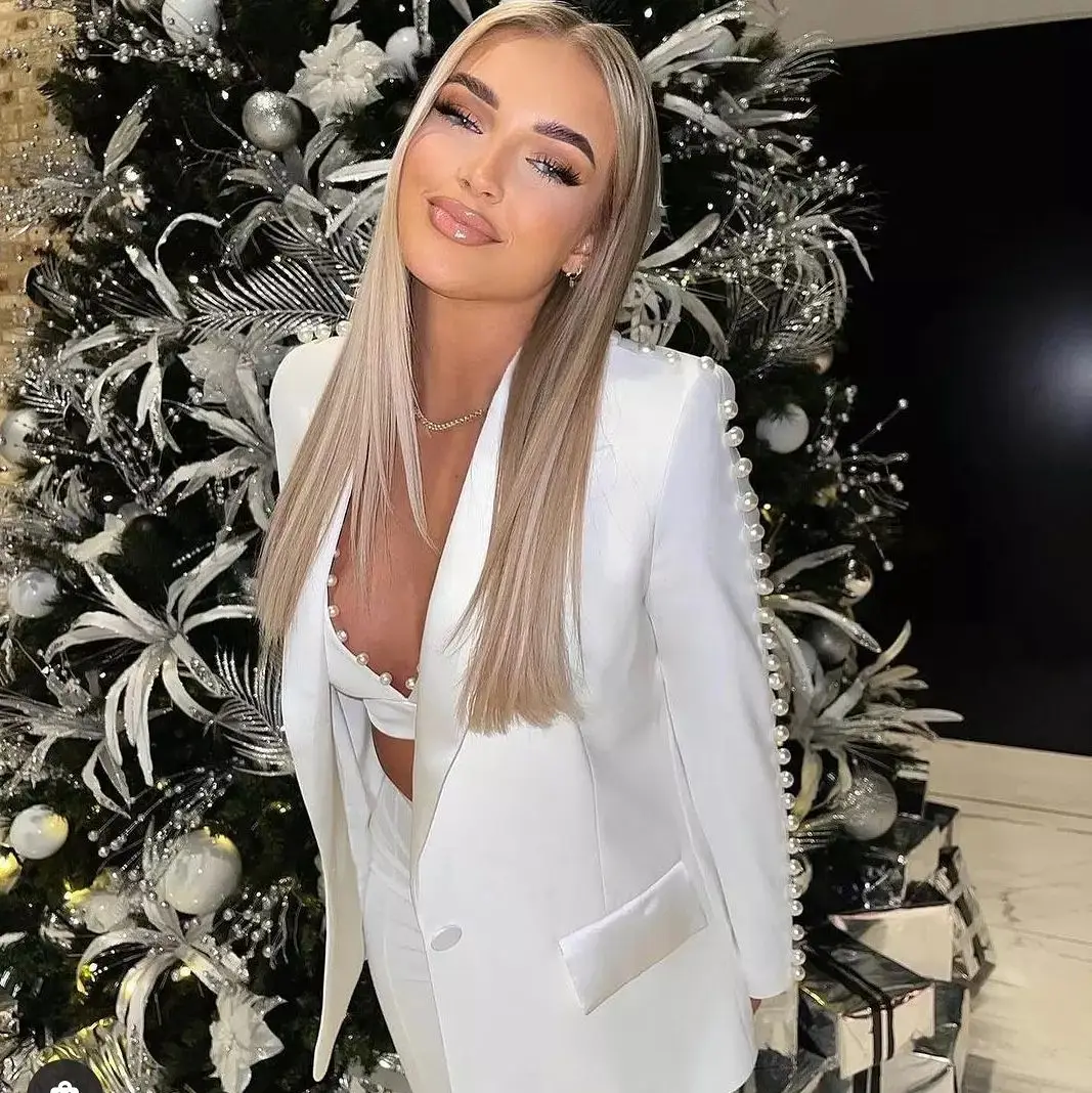 Chic White 3-Piece Women's Suit Set – Stylish Blazer, Tailored Pants, and Bralette for Evening Parties and Special Occasions