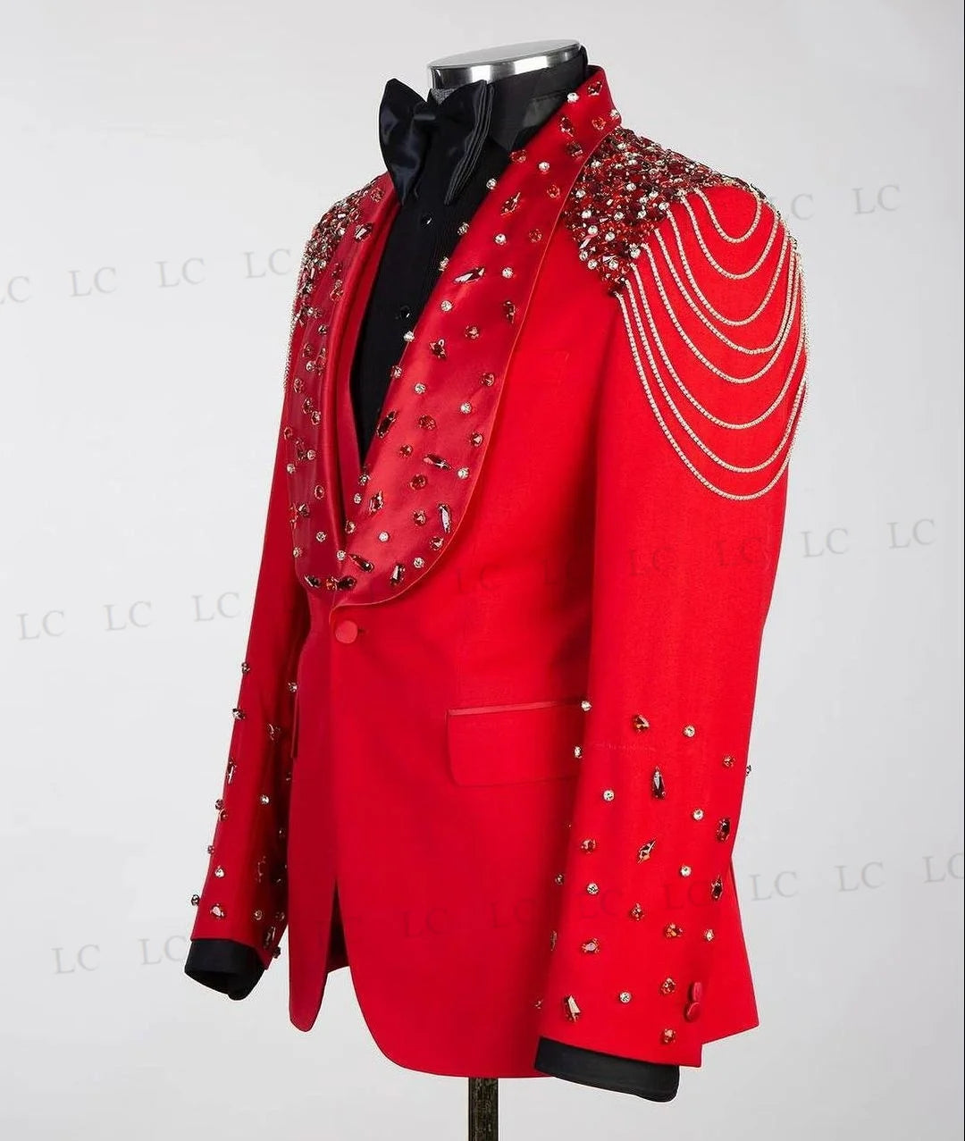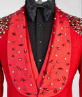 Dazzling Red 3-Piece Men's Tuxedo Set with Beaded Embellishments for Weddings, Proms, and Parties - Stylish Plus Size Blazer with Elegant Details
