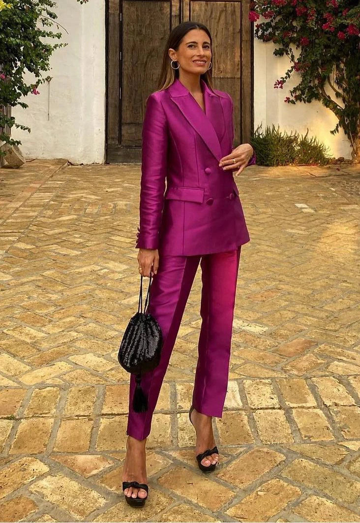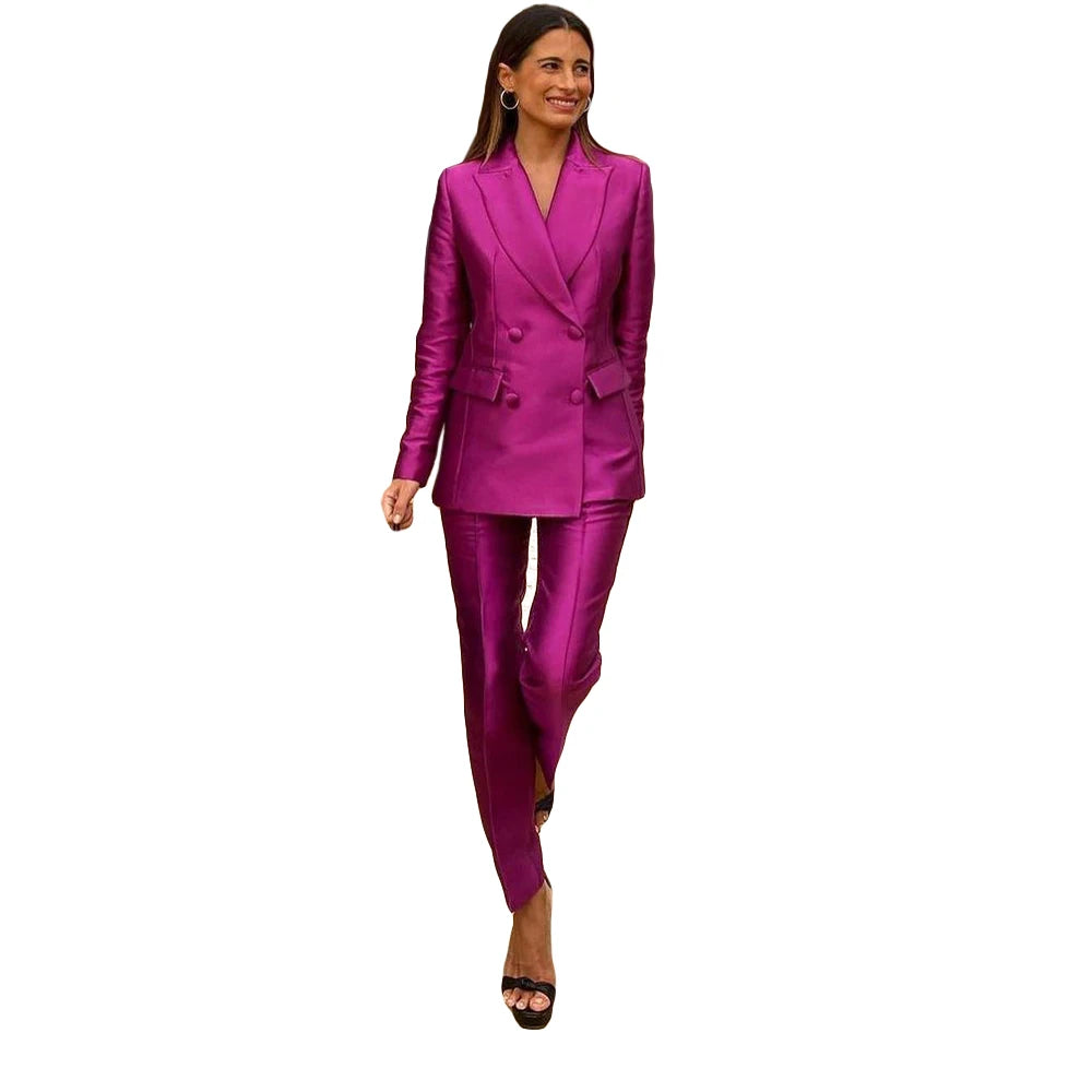 Fashion 2 Pieces Sets Dresses Suits Women Peaked Lapel Pocket Outfits Slim Fit Prom Party Gown