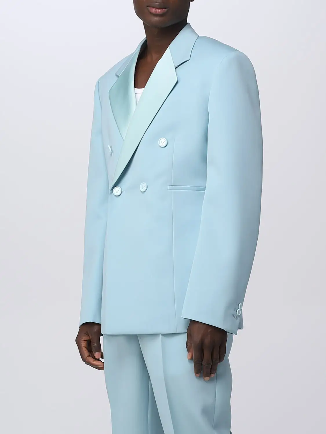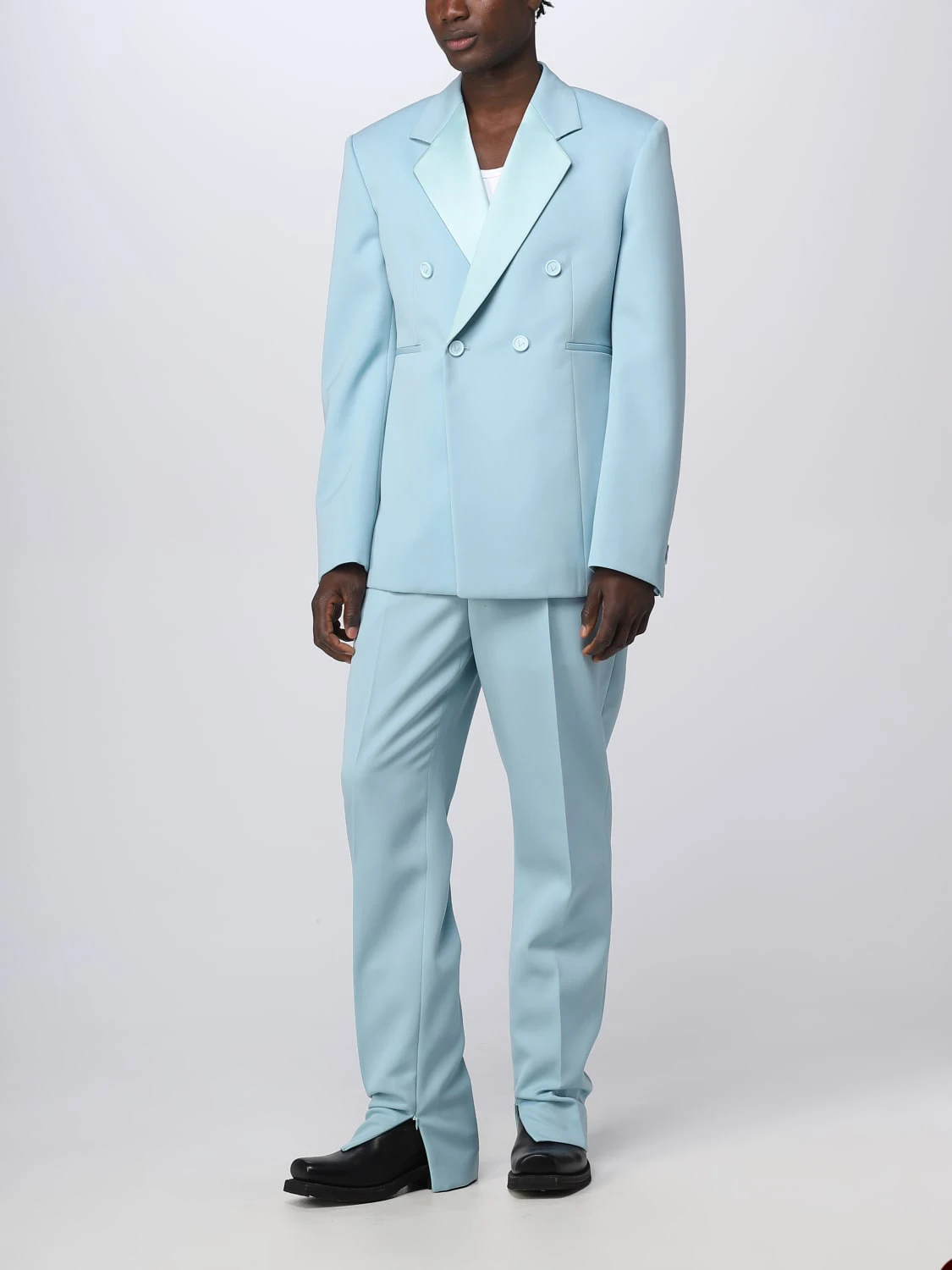 Blue Men's Suit 2 Pieces Blazer Pants One Button Peaked Lapel Satin Business Formal Work Wedding Groom Costume Homme