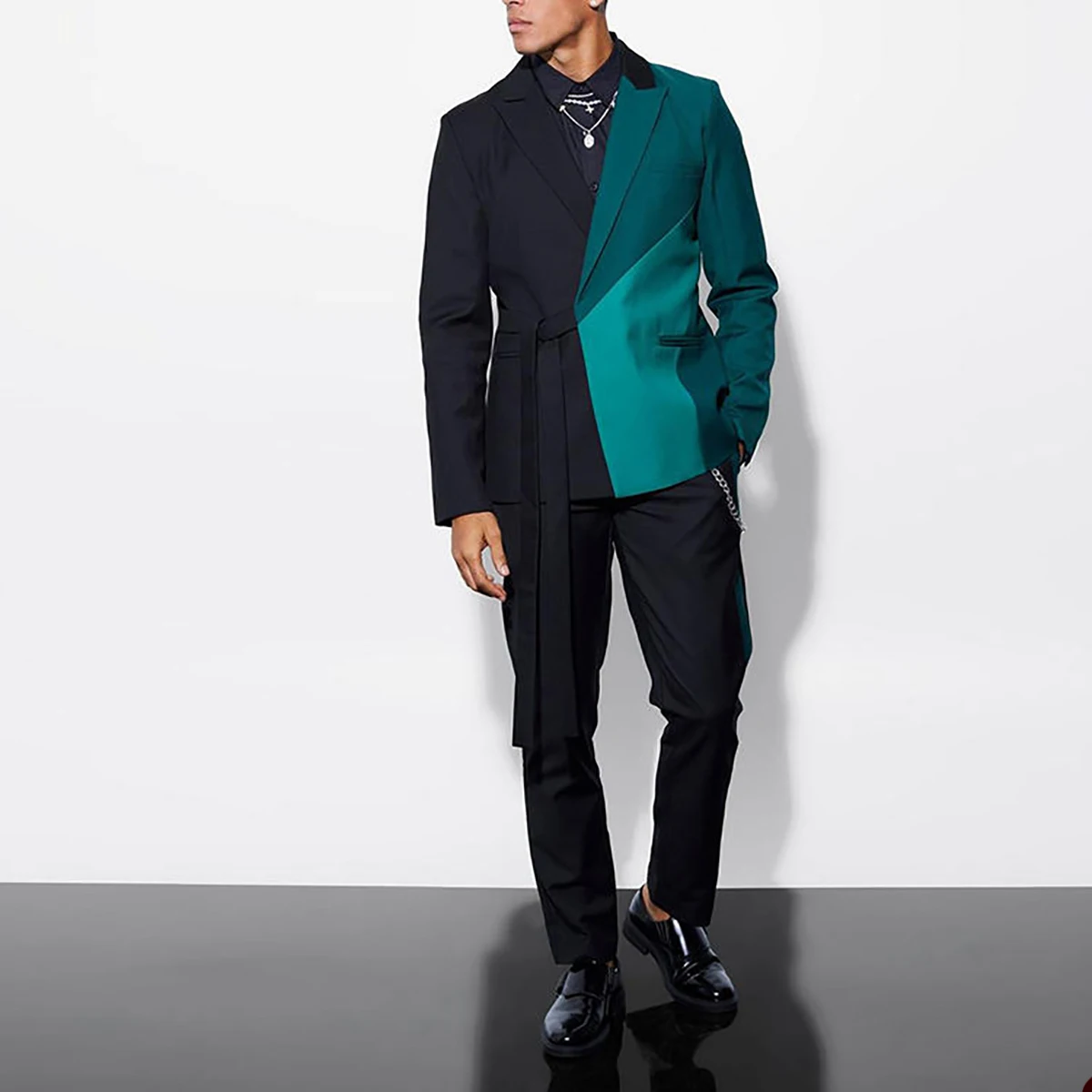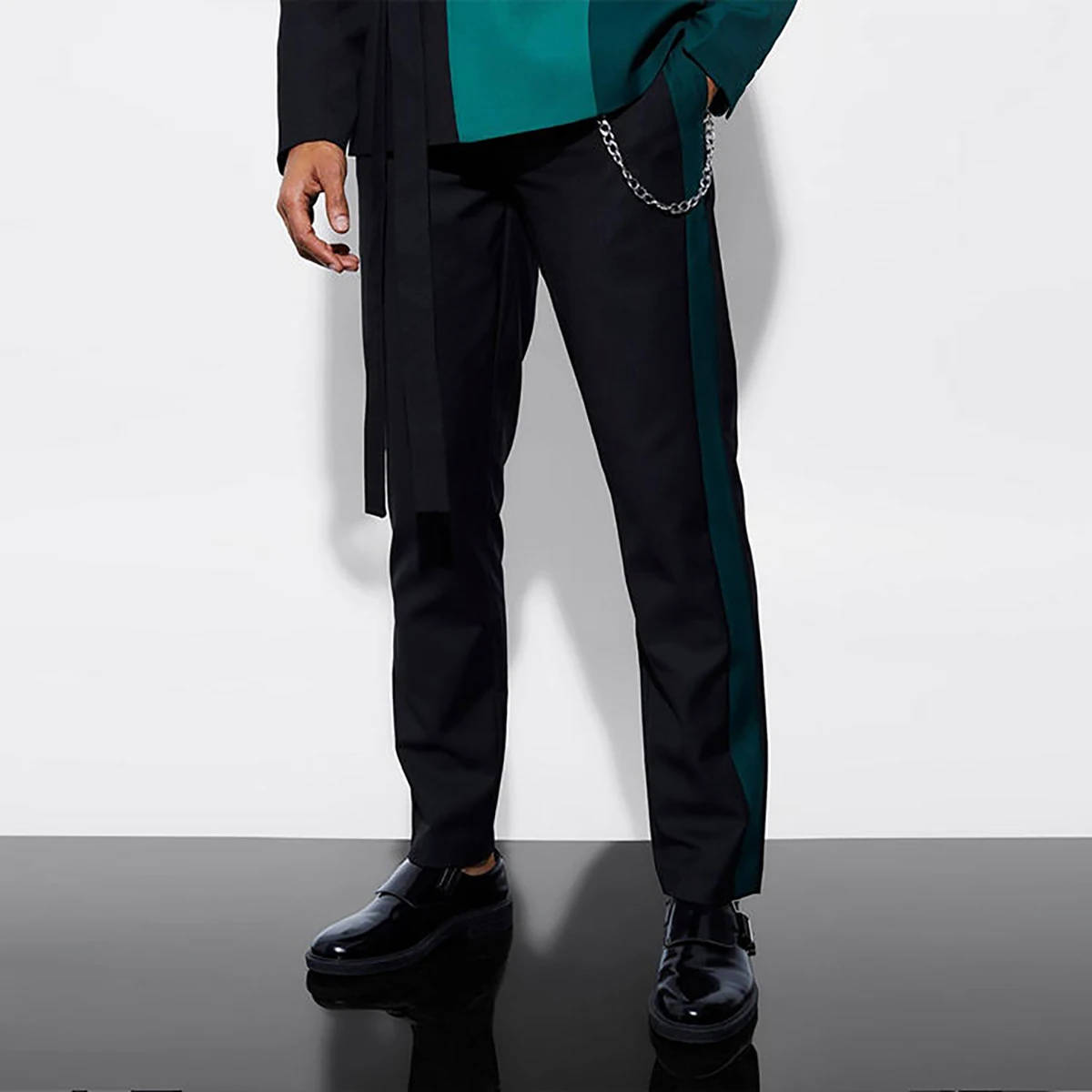 This product is a sophisticated and stylish 2-piece black pants set, designed for men who appreciate fashion and elegance. The slim fit double-breasted groom tuxedo costume is perfect for formal occasions and business settings, adding a touch of class and sophistication to any ensemble