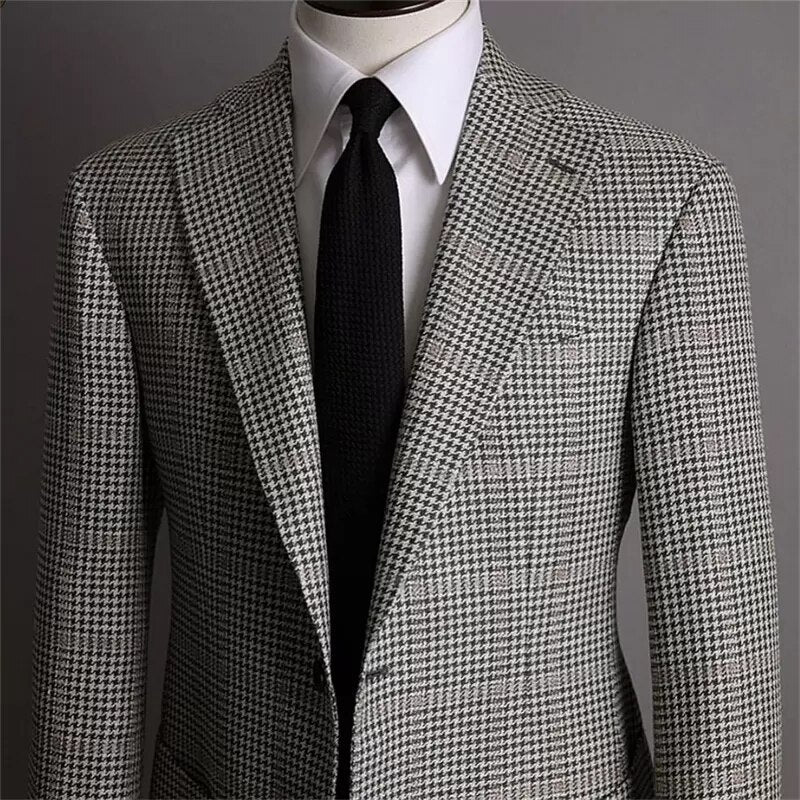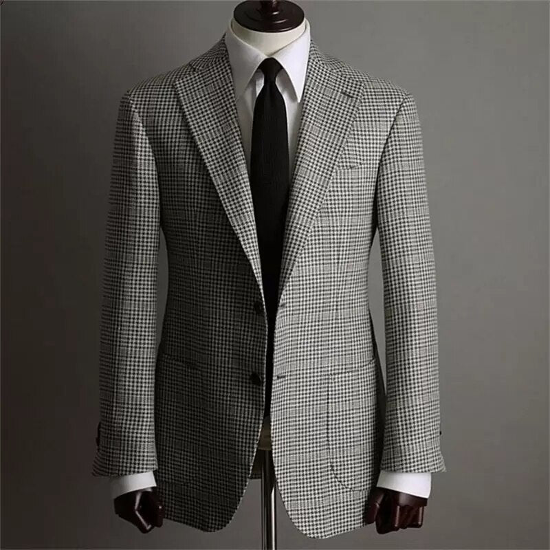Houndstooth Men Suits Custom Made Men Jacket Two Button Tuxedos Peaked Lapel Blazer Business Casual Coat