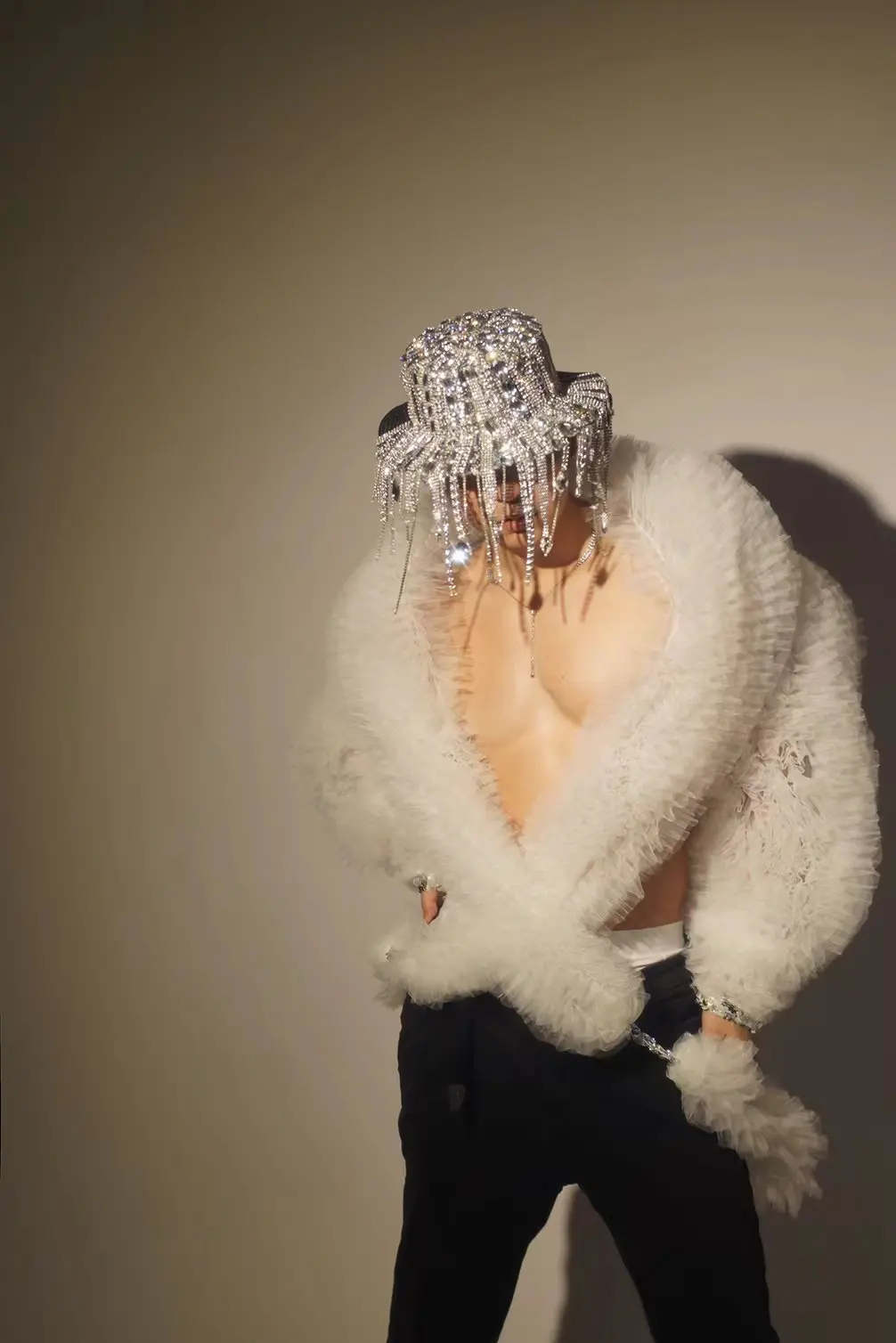 Fashion Sparkly Sequins White Mesh Coat Men Female Singer DJ Stage Show Jacket Cloak Open Stitch Ds Performance Costume Dapicao